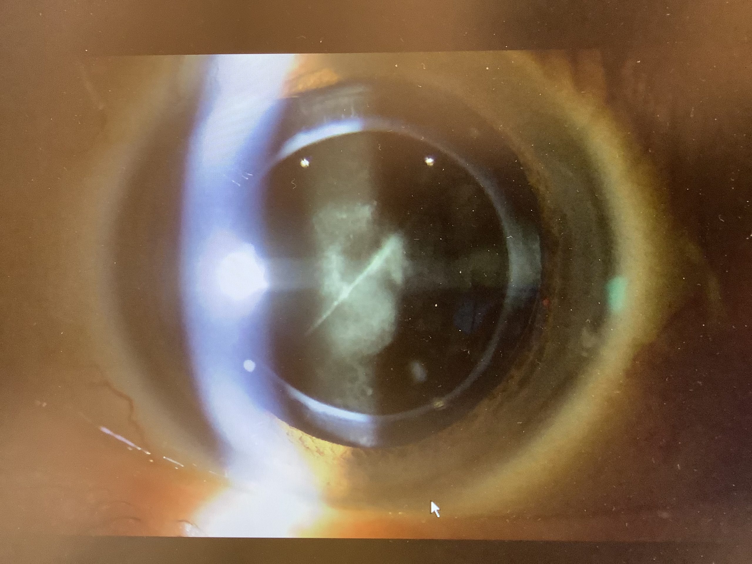 外来では栃木県の大田原から昨年の夏に栃木県内の大学病院で硝子体混濁に対し、硝子体手術と白内障手術を行い、術後経過良好で1月に終診となったそうですが、また見えにくさが出て再受診したところ、『硝子体の濁りがあり、点眼で様子を見て、改善がなければ再手術』と言われ、点眼をしても全く変化がなかったので、当院で治療中のお知り合いの方の紹介でいらっしゃいました。硝子体の濁りというので、ぶどう膜炎?と思ったのですが(前医でもぶどう膜炎の検査は行ったもののはっきりした原因が分からなかったようです)、眼の状態を診させていただくと、眼の中の炎症は全くなく、水晶体のすぐ裏側の硝子体(前部硝子体)の濁りがあり、おそらく、最初の手術取り残した硝子体が単純に変性して混濁し、それが見えにくさの原因になっていると思われました(手術の詳細が不明のため、はっきりしたことは言えませんが、、、)。手術までしなくとも、YAGレーザーで濁りを飛ばせそうだったので、まず、レーザーでの治療をさせていただきました。もし、これで改善が見られない場合は、手術が必要かもしれませんが、よくなってくれるといいなと思います。