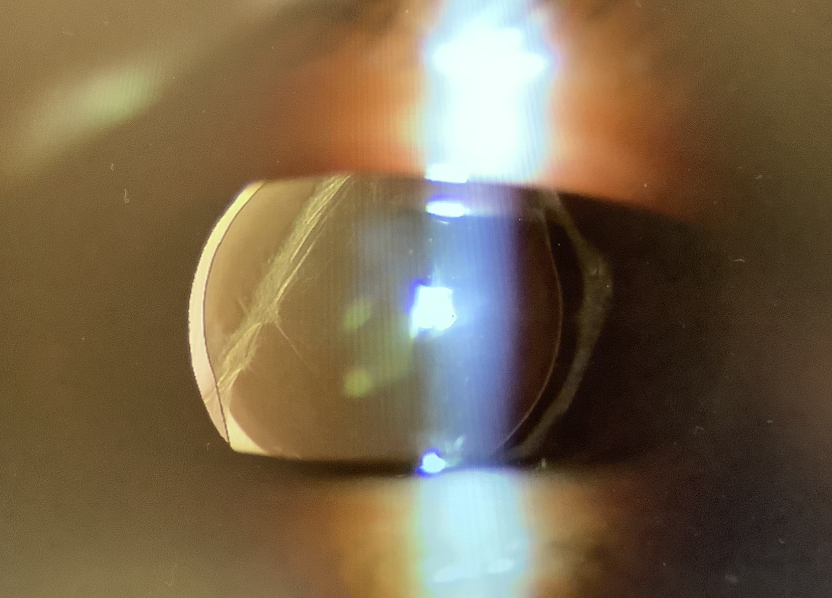 今年の1月にお近くの京都の眼科で左眼の白内障手術を受け、遠方に度数を合わせたそうですが、あまり遠くがよく見えず、白内障がなくて遠方がよく見えている右眼との差が強く、レンズの入れ換えを希望されたそうです。手術してくれた眼科でも相談したそうですが、レンズの入れ換えはしていないと言われ、京都のみならず関西や九州の方までレンズの入れ換えをしてくれる眼科を探したけれど、みつからず、僕のところまで来てくださったそうです。眼鏡で見えればいいじゃないか?と考えてレンズ交換はしない先生も多いと思います(単焦点ではそれでもよくとも、多焦点の不具合ではそうはいかないのですが、、、)。でも、本当は、眼内レンズの入れ換えをしていても、あまり表には出していない先生もいらっしゃるのではと思います。