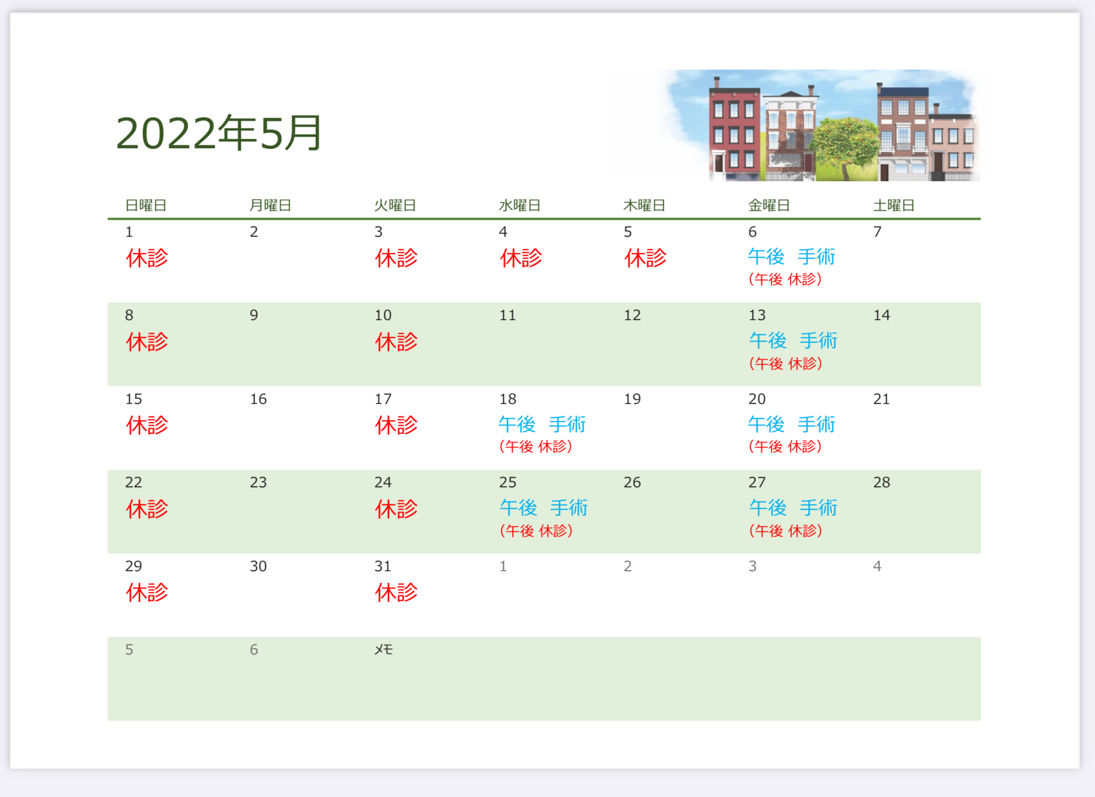 今月の診療カレンダーを更新しました。