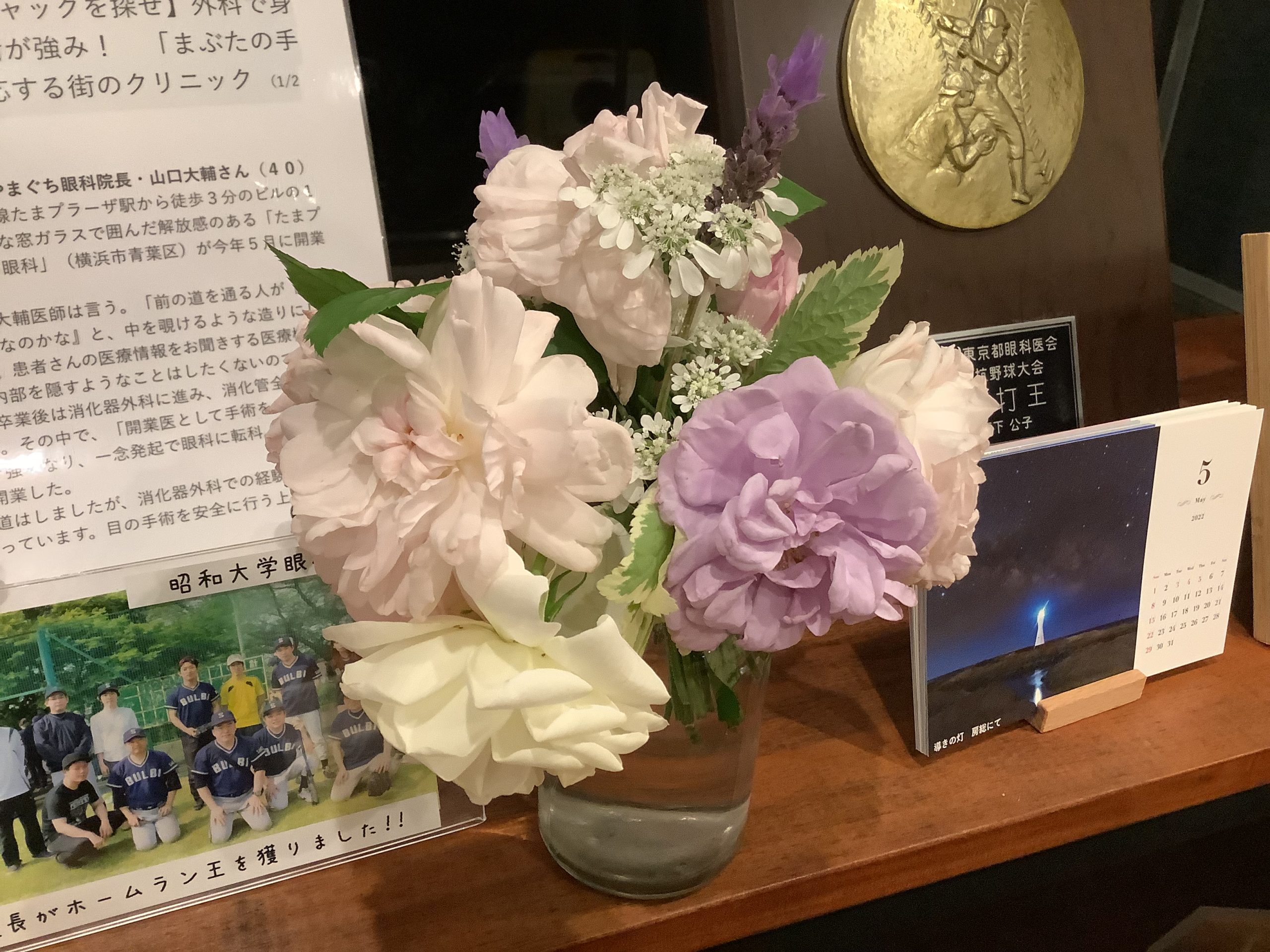 それから、今日の外来ではお家でバラを育てている患者さまからかわいいバラのブーケをいただきました。僕が昭和大学藤が丘にいた時から僕の外来にずっと通ってくださる患者さまで、とてもありがたいことです。