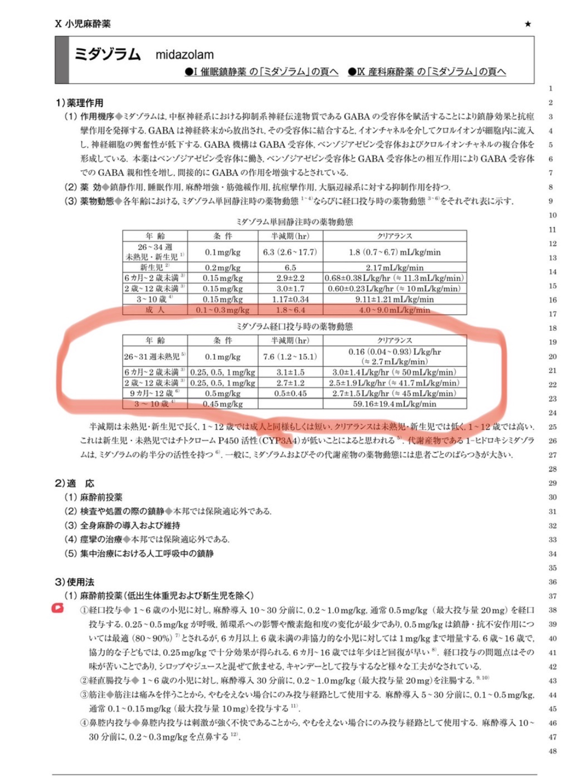↑この麻酔マニュアルのミタゾラム(ドルミカム)の『麻酔前投薬』を参考にしています。