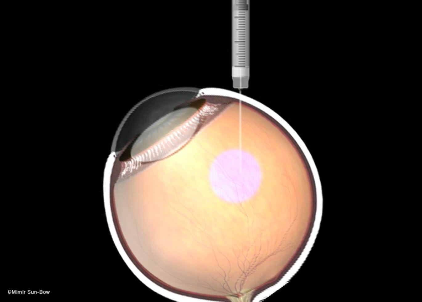 ↑硝子体注射のイメージ図。針の刺し方で水晶体を傷つけてしまう恐れが、、、