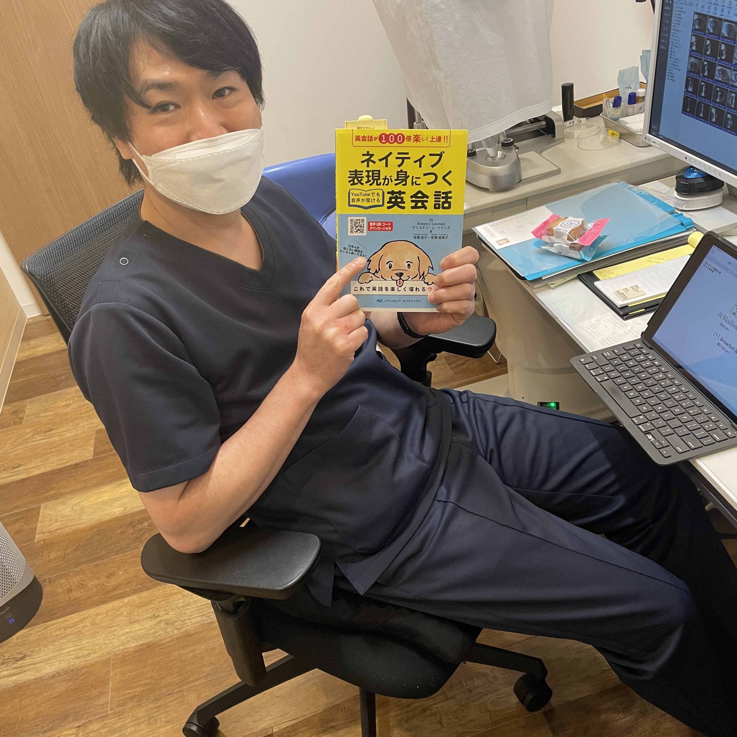 昨日、白内障の手術を受けた患者さまがお書きになった英会話の本をいただきました。昨年の東京オリパラのボランティアで(の英語の出来なさ加減で、、、)英語を頑張ろうと思っていたモチベーションが忙しさを言い訳に下がっていたところだったので、『英語も頑張れ』という天からの声と思って、また頑張ろうと思います。本、どうもありがとうございましたm(_ _)m