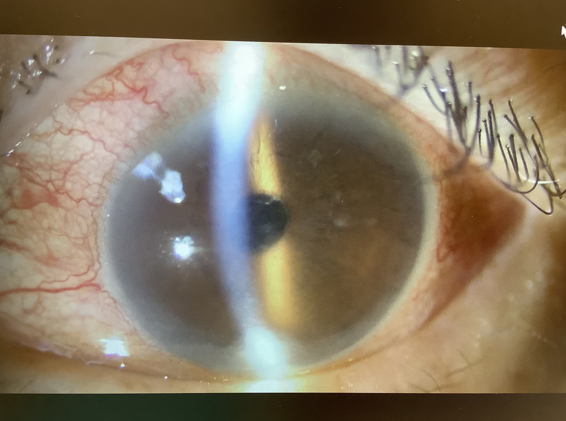 昨日、TASSと思われた患者さまは、前房を洗い、よくなると思っていたのですが、昨日よりも炎症が強く出ていて、炎症物質の沈着(フィブリン)や充血も増えていました。ちょっとよくない感じだったので、今日も洗浄を行わせていただきました。
