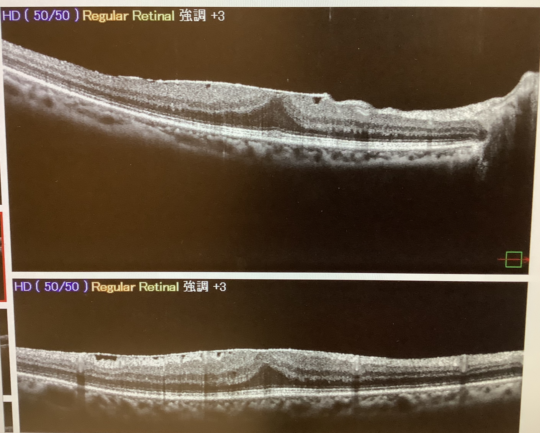 硝子体手術の方は2ヶ月前に白内障の手術を受けた60代の女性で、元々、黄斑上膜があるのは分かっていたのですが、まずは白内障の手術だけ行い、視力の改善が乏しかったり、歪みの自覚が強く出るようなら、改めて硝子体手術を行いましょうという事前の話し合いで、結果的に、白内障手術だけでは視力の改善が乏しく、今回、追加で硝子体手術をさせていただきました。