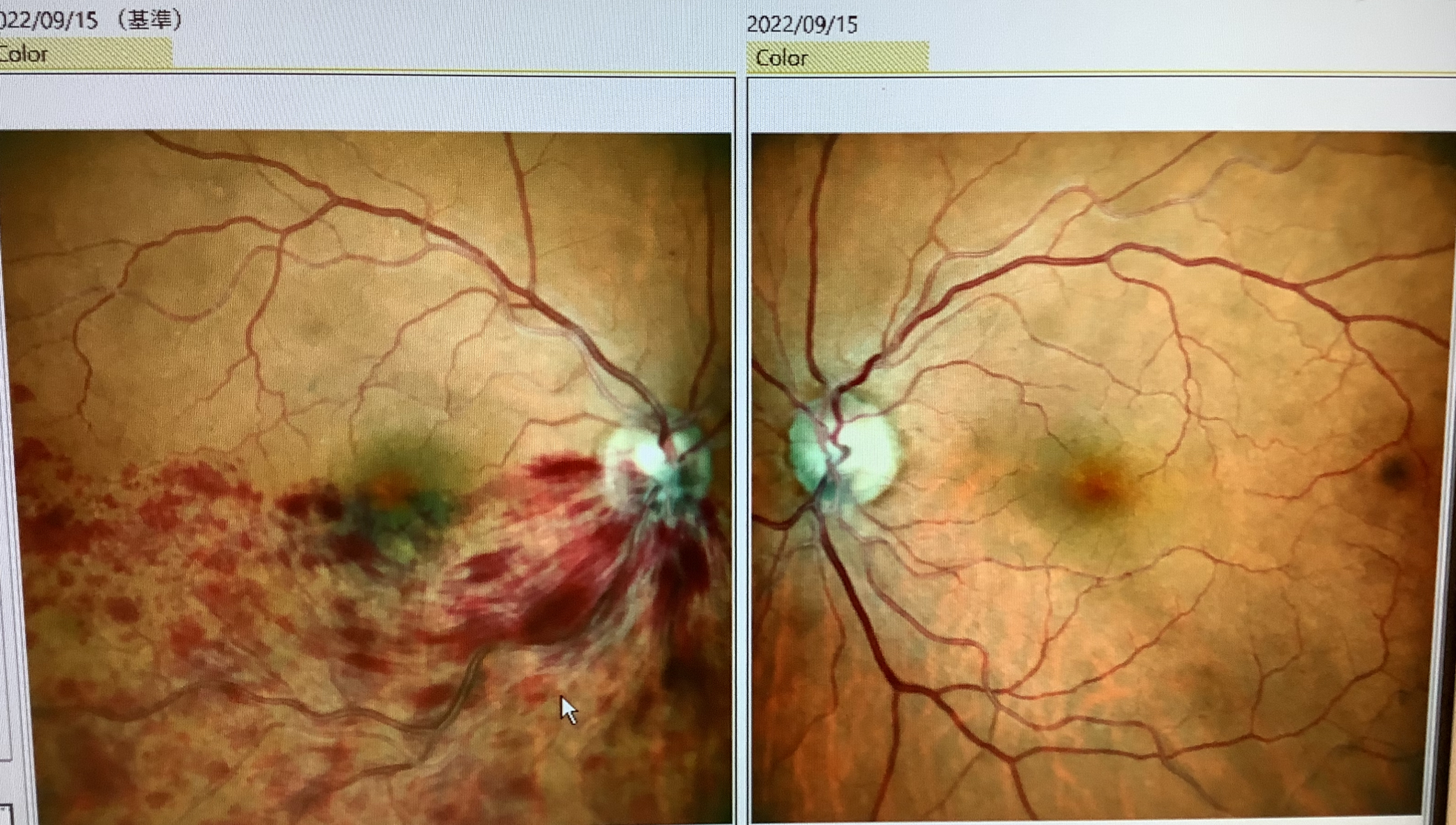 外来では『網膜静脈閉塞症』(RVO)という病気の患者さんが2人、いらっしゃいました。