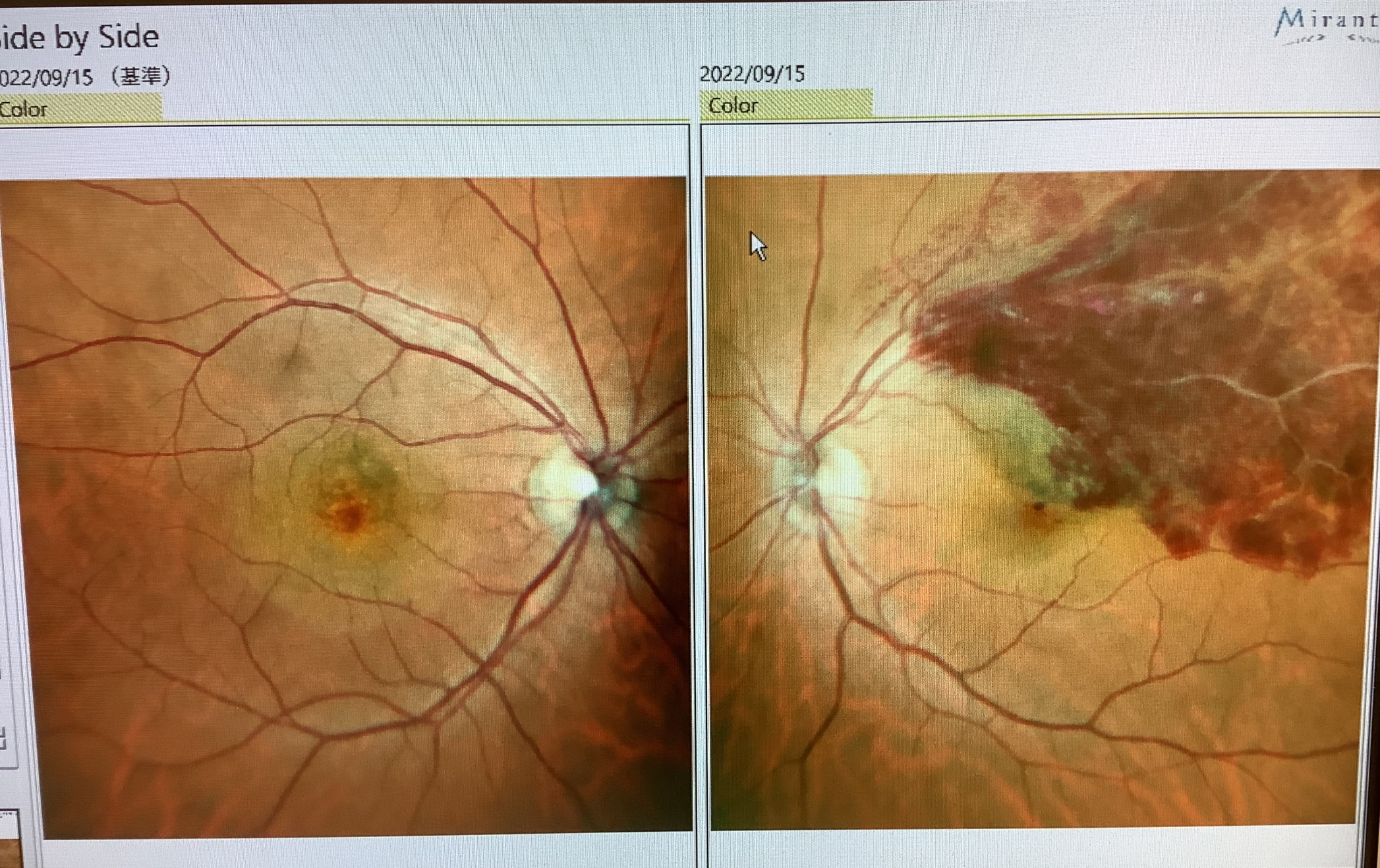 一人は40代半ばの男性で『2〜3日前から見えにくい』と、もう一人は70代の女性で『2〜3ヶ月前からかすむ』という症状でした。