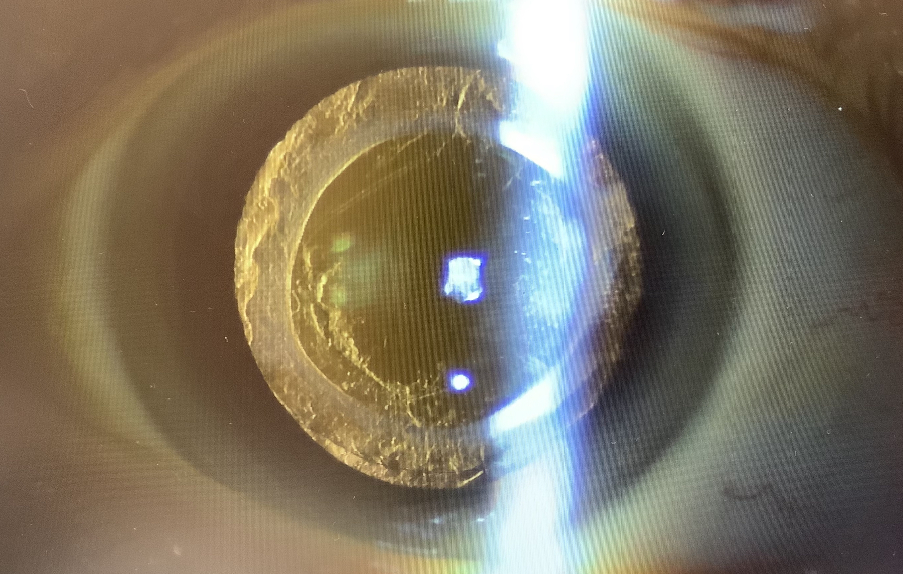 レンズは単焦点レンズできれいに眼の中に入っていますが、暗い中で光を見ると、光の線(スターバースト)がかなり強く出るようです。はっきりとした原因は特定できませんでしたが、唯一、気になったのは、後嚢の不整な濁りです。