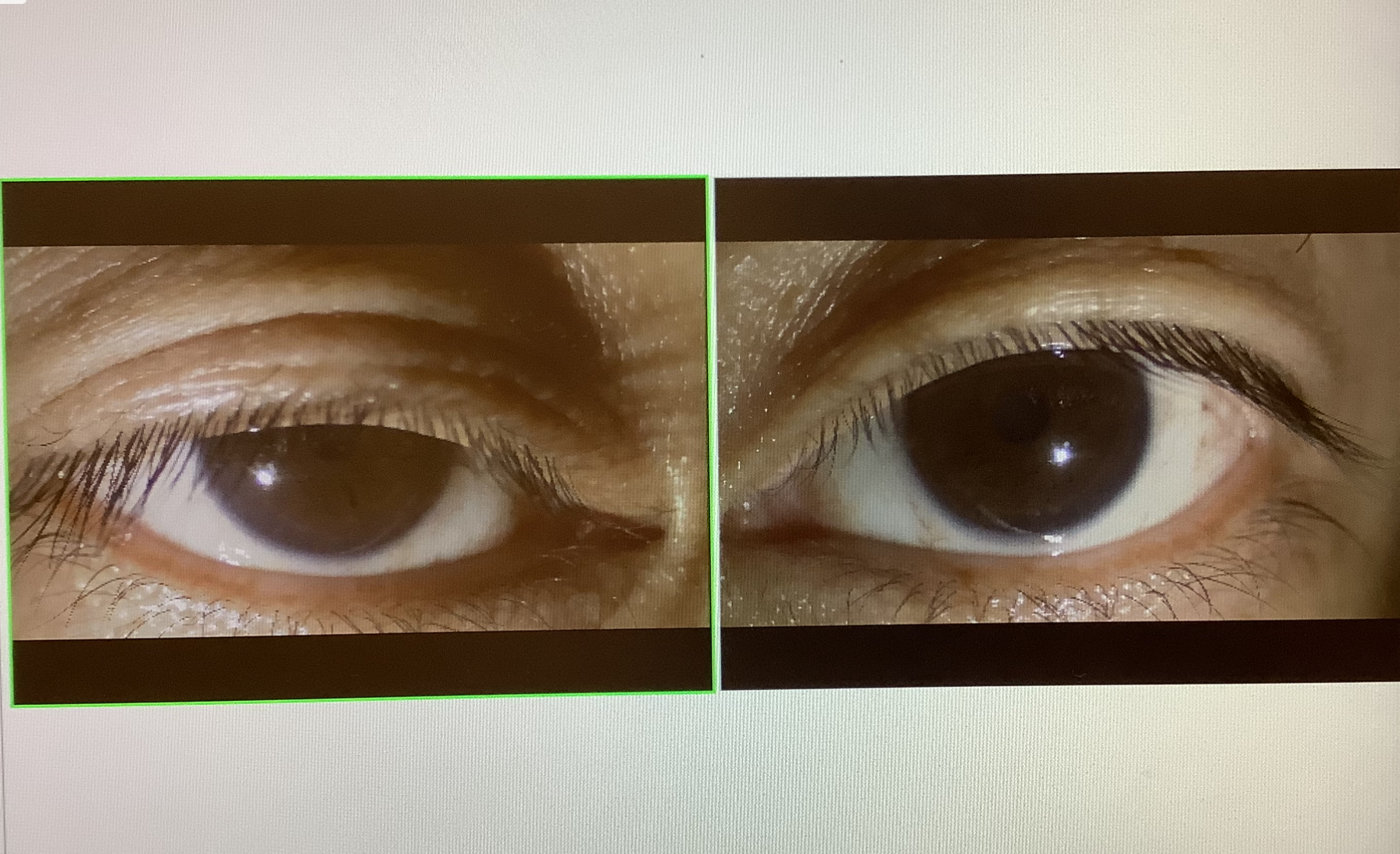 ↑片方が強い眼瞼下垂で片方だけの手術は左右揃えるのが難しいです。