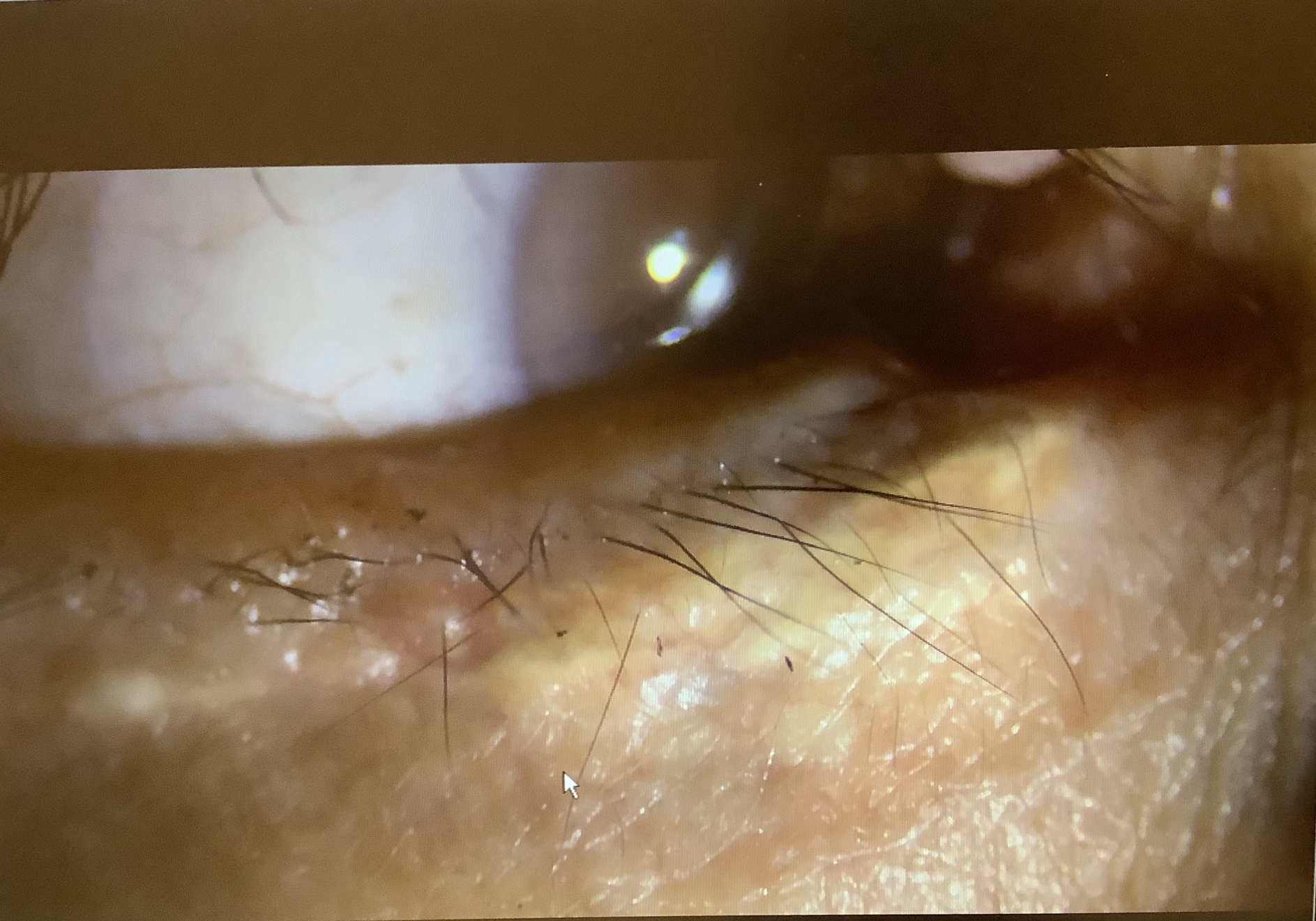 霰粒腫の71歳の女性は以前、他院で霰粒腫にステロイド(ケナコルト)の注射を行い、その後、薬の粒が表面に残ってしまい、その粒を取って欲しいといらっしゃり、昨年の7月に一度、切除しました。その時、ケナコルトの白い粒子が皮膚の表面に残っていましたが、まぶたの中には霰粒腫の組織が残っていたので可能な限り取り除きました。”可能な限り“というのは、霰粒腫がまぶたの中に散り散りに存在してしまっていたので、なかなかきれいに全て取り除くというのが困難な状況でした。そして、今回もまた霰粒腫が出てきてしまったので、再度の切開を行わせていただきました。