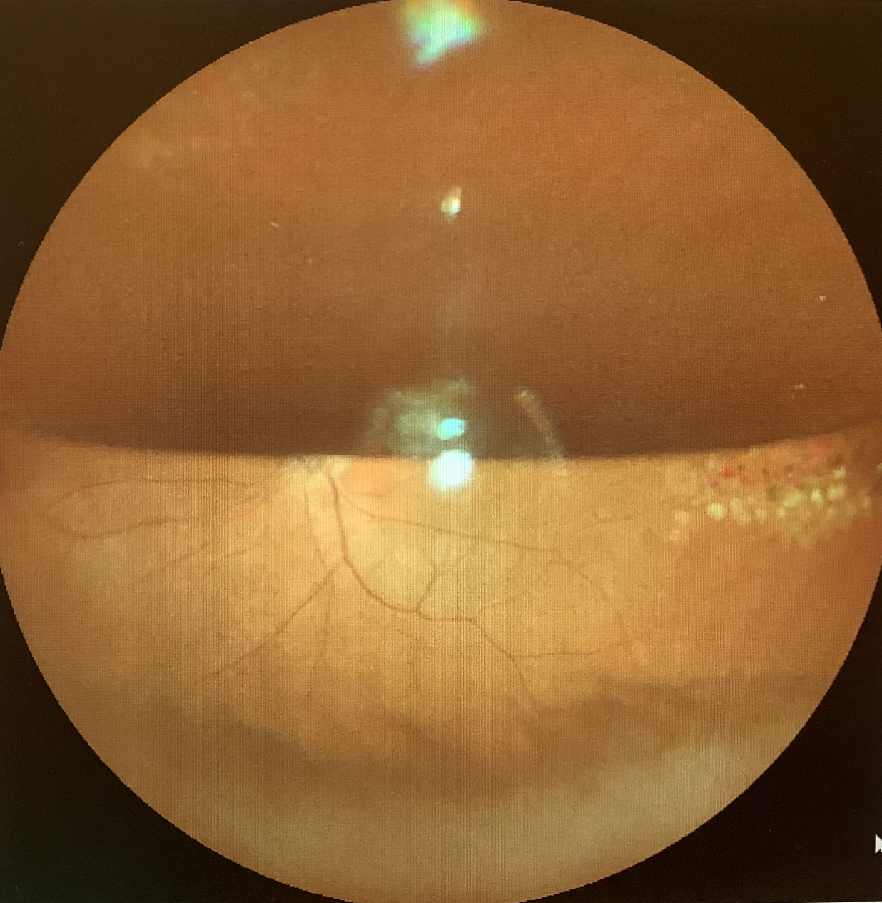 昨日の硝子体混濁の硝子体手術の患者さまは、硝子体の中に入ると、網膜の穴があったため、穴の周りをレーザーで固め、通常は、硝子体を切除した後は手術用の水を満たして終えてくるのですが、念のため、水でなく空気に置き換えて手術を終えました。
