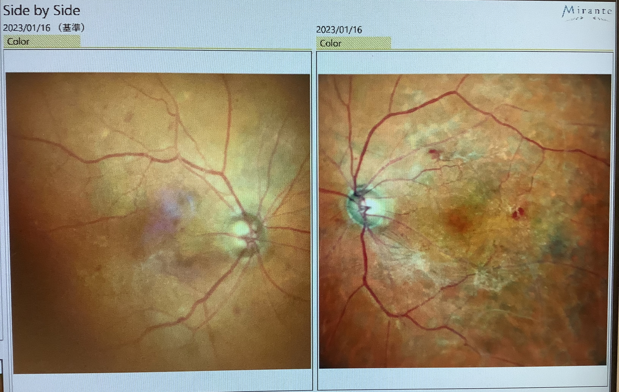 白内障手術の申し込みになった方の一人は、昨年の終わりに左眼の糖尿病網膜症の硝子体出血で硝子体手術を受けてくださった80代の男性ですが、右眼も結構な網膜症があり、レーザー治療(汎網膜光凝固術)が必要な状況で、今年に入ってレーザー治療を開始しました。しかし、白内障が強いため、レーザーのパワーを上げても、中々、レーザーが網膜まで達してくれず、また、白内障が弱いところを通ったレーザーは強すぎて痛みが強く出てしまい、うまく治療が進まないため、レーザー治療をスムーズに行うために白内障手術を予定することにさせていただきました。白内障の手術で濁った水晶体を取り除き、きれいな眼内レンズにしてあげると、レーザー治療がしやすくなり、必要以上にパワーを上げなくて済み、痛みも出にくくなり、よりレーザー治療がしやすくできるかと思います。