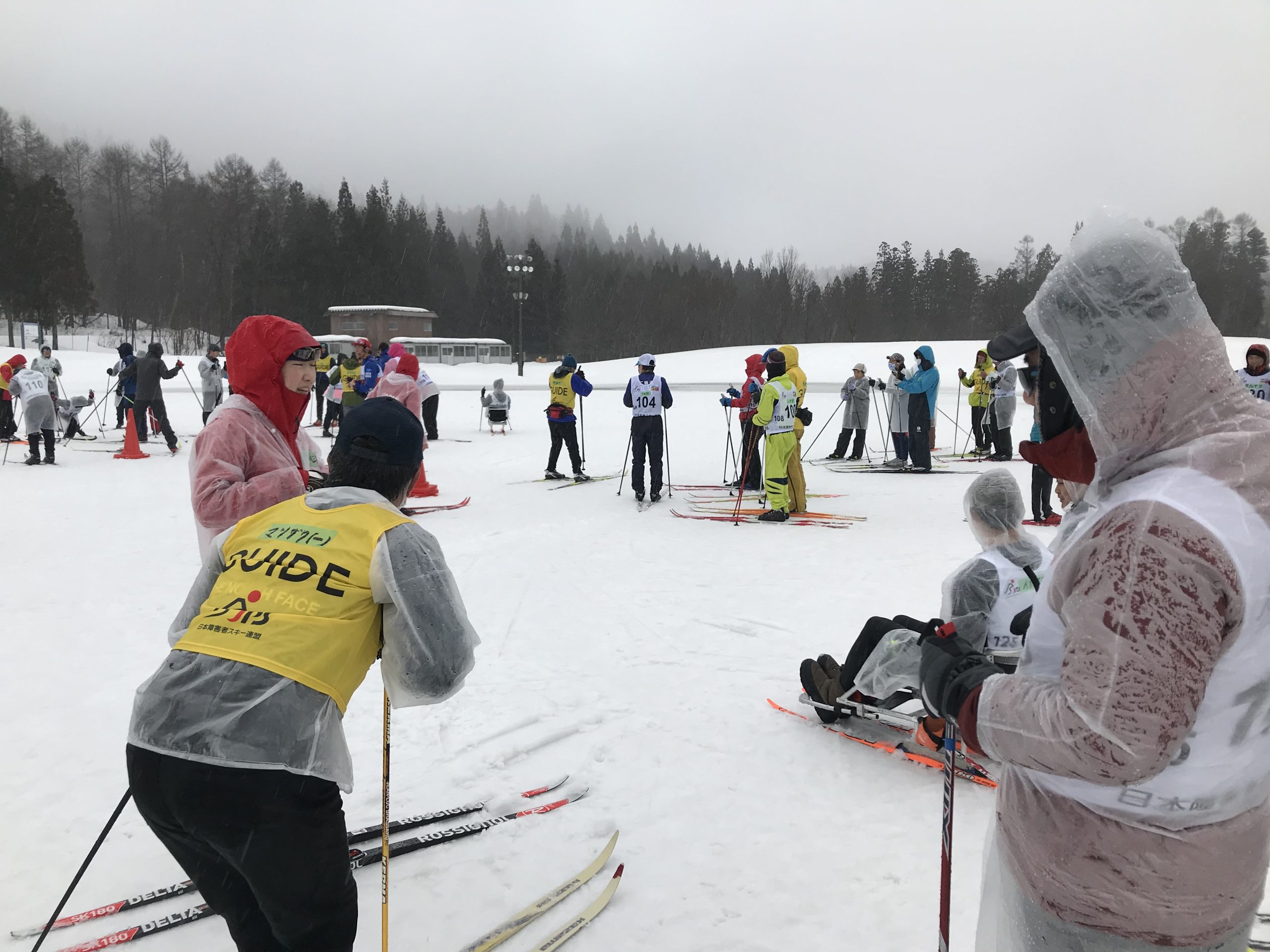 障害のある人がスキーを?と思うかもしれませんが、確かに視覚障害の人はなかなか自分で見て滑る訳にもいかないので、ガイド役の人の声を頼りに滑る必要がありますし、四肢の不自由な人たちは、手が不自由な人は片方のストックだけ使ったり、脚の不自由な人はシットスキーといって座るタイプのスキーに乗って滑ったりします。このように眼が見えないから、脚が不自由だから、スキーなんてできない、、、なんてことは決してないんですね。健常者のようにはいかない部分もありますが、それはちょっとした工夫と誰かの助けでカバーすればよい訳です。でも、“健常者のようにいかない”なんて言ってしまいましたが、今日も参加されていた有安選手のようなパラリンピアンはめちゃくちゃ速くて、普通の健常者なんかでは到底太刀打ちできません、、、有安選手とガイド役の藤田選手は前日まで北海道で合宿だったそうですが、完全にアスリートですごくかっこよかったです。
