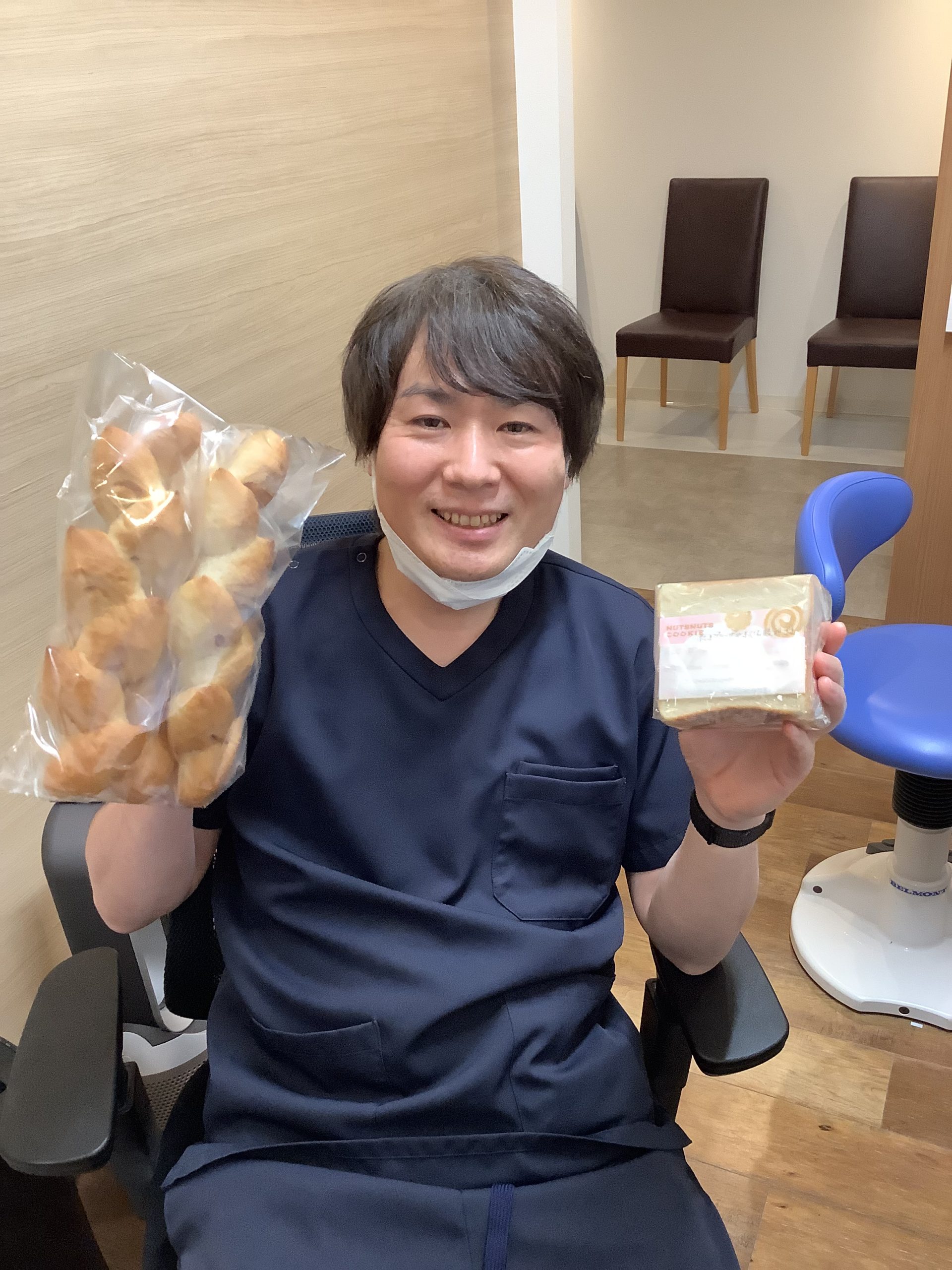 それから、今日は2か月ほど前に眼内レンズの入れ換えの手術を受けてくださった患者さまが、手作りのパンを作って持ってきてくださいました(スタッフの分も、たくさん!)。お家でパン教室をしているほどで、優しい甘さのとってもおいしいパンでした。またもう方方の眼の手術も控えていますが、これからもパン作りができるように、僕も手術、頑張ろうと思います。パン、ごちそうさまでした。ありがとうございましたm(_ _)m