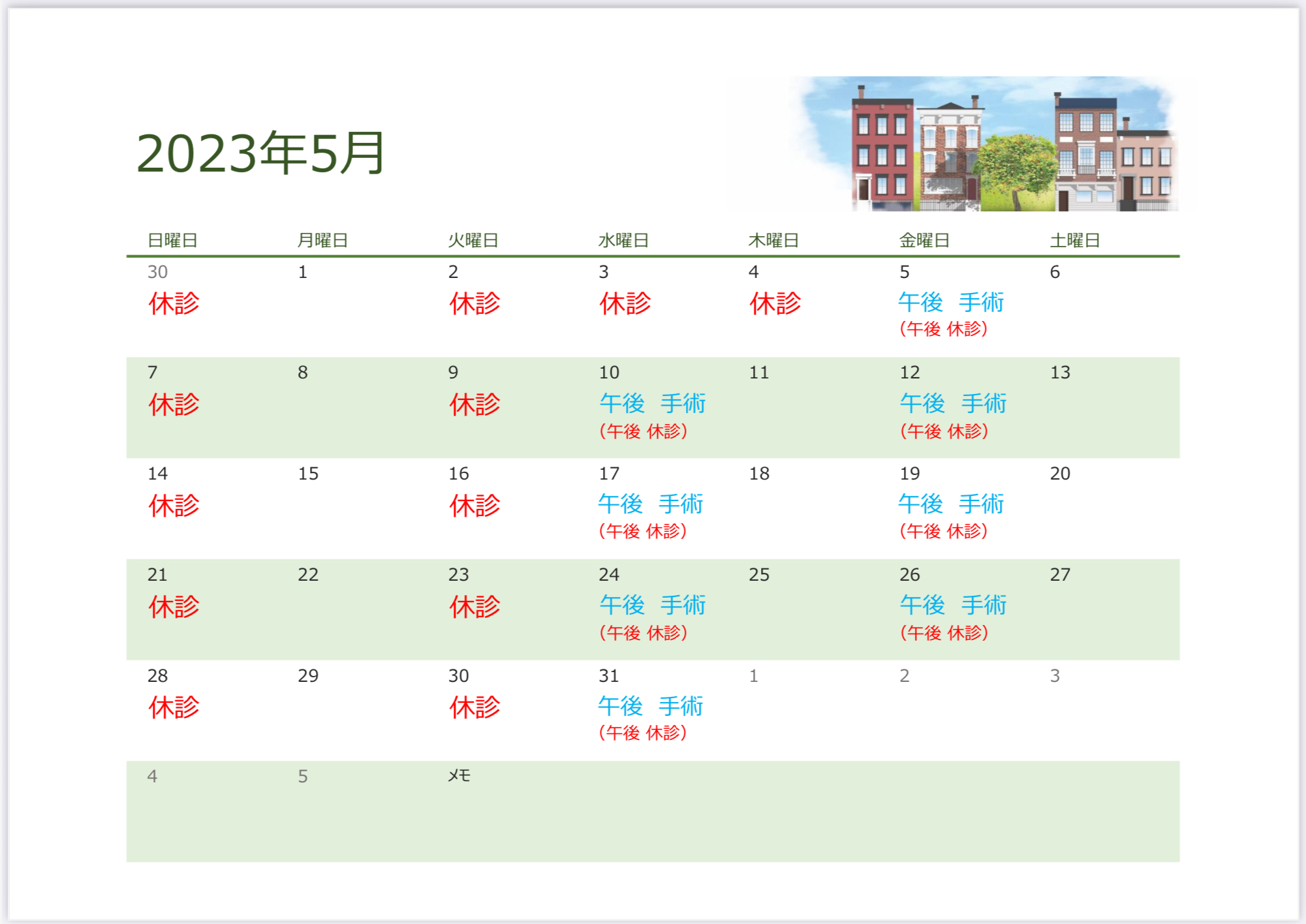 今月の診療カレンダーを更新しました。