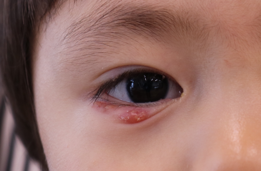 霰粒腫の切開の申し込みになった男の子は、昨年の10月くらいから両眼の下まぶたにしこりができてしまい、左はある程度、自然と小さくなってくれたものの、右の方は徐々に表面にしこりが成長してしまい、なかなか改善せず、若干、ヤケドの跡のような瘢痕ができてしまっているような状況でした。瘢痕ができてしまうと、切開してもきれいになりにくいのですが、今のまま霰粒腫を残しておく方がよくないと思ったので、なるべくきれいにできるように、切開を予定させていただきました。