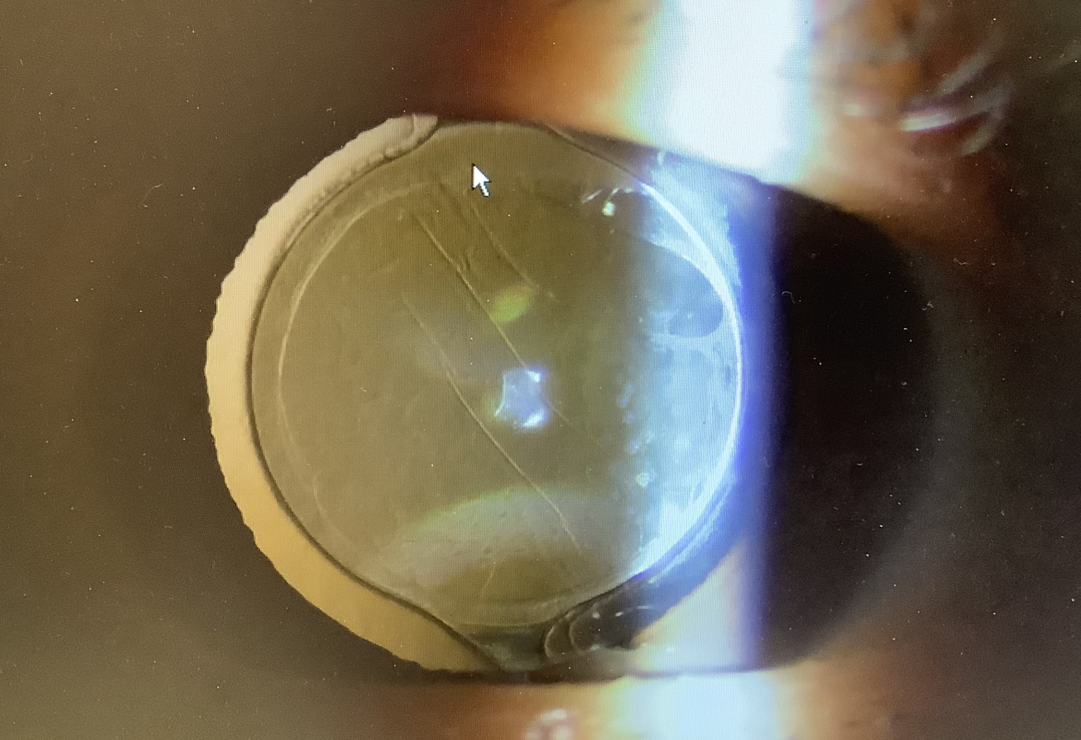 レンズ交換は白内障の手術の後、時間が経つと、取り出しにくくなってしまいますが、この方の場合、術後半年経っているものの、水晶体嚢の濁りが少なく、前嚢切開(CCC)も大きく、眼内レンズもHOYA社のレンズという条件が揃っており、比較的、容易に安全にレンズの交換が可能かと思われました(もちろん、絶対ということはありませんが、、、)。