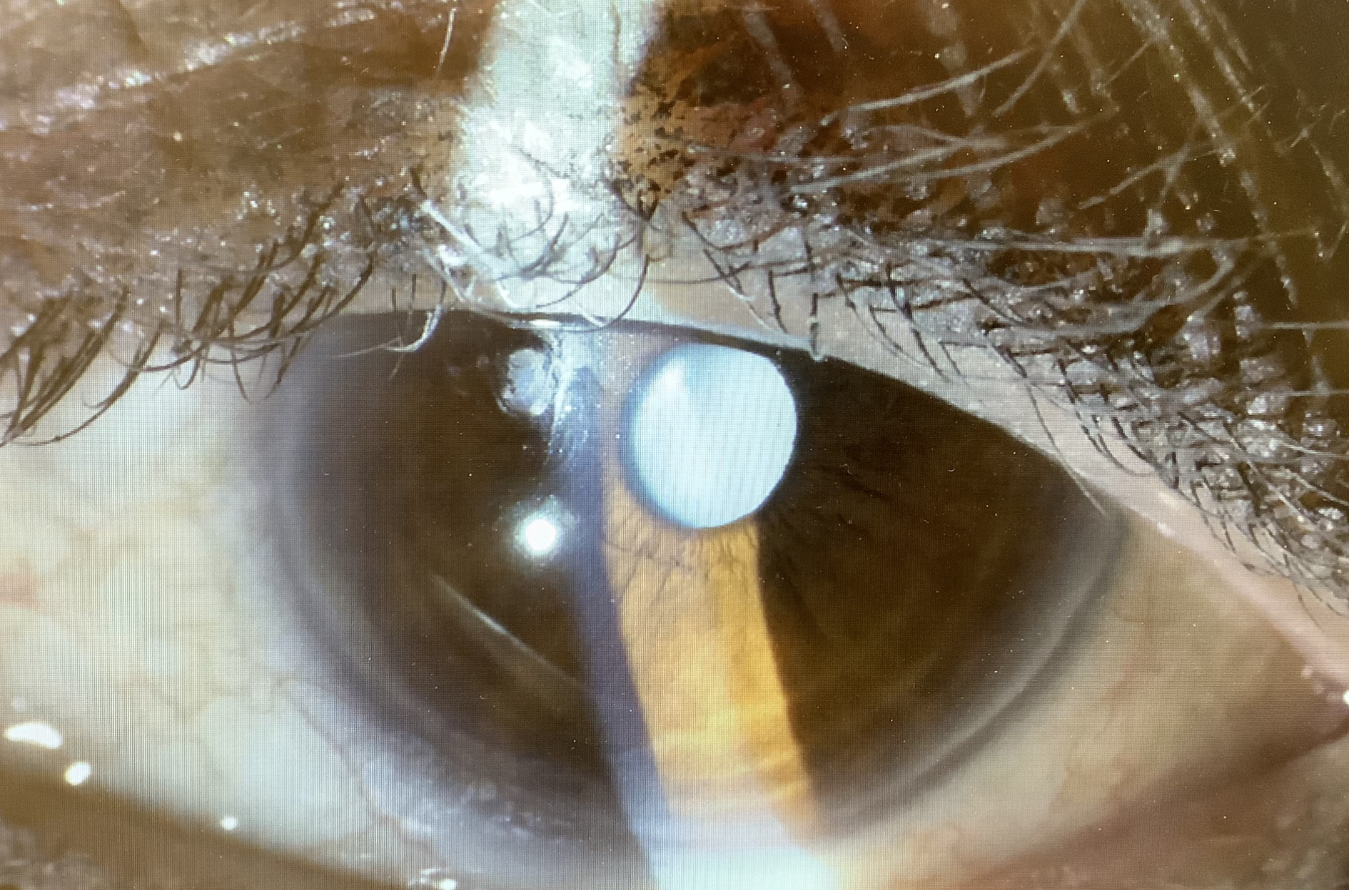 右眼は矯正視力で0.9出ているものの、左眼は手動弁(目の前で手が動くのが分かるくらいの見え方)しかなく、白内障が真っ白けになってしまっている“成熟白内障”の状態でした。左眼は、もちろん手術の適応であまり先にしない方がよい白内障でしたが、今回の帰国は10日程度の短期間で7月には本帰国されるとのことでしたので、その時に合わせて手術をスケジュールしました。