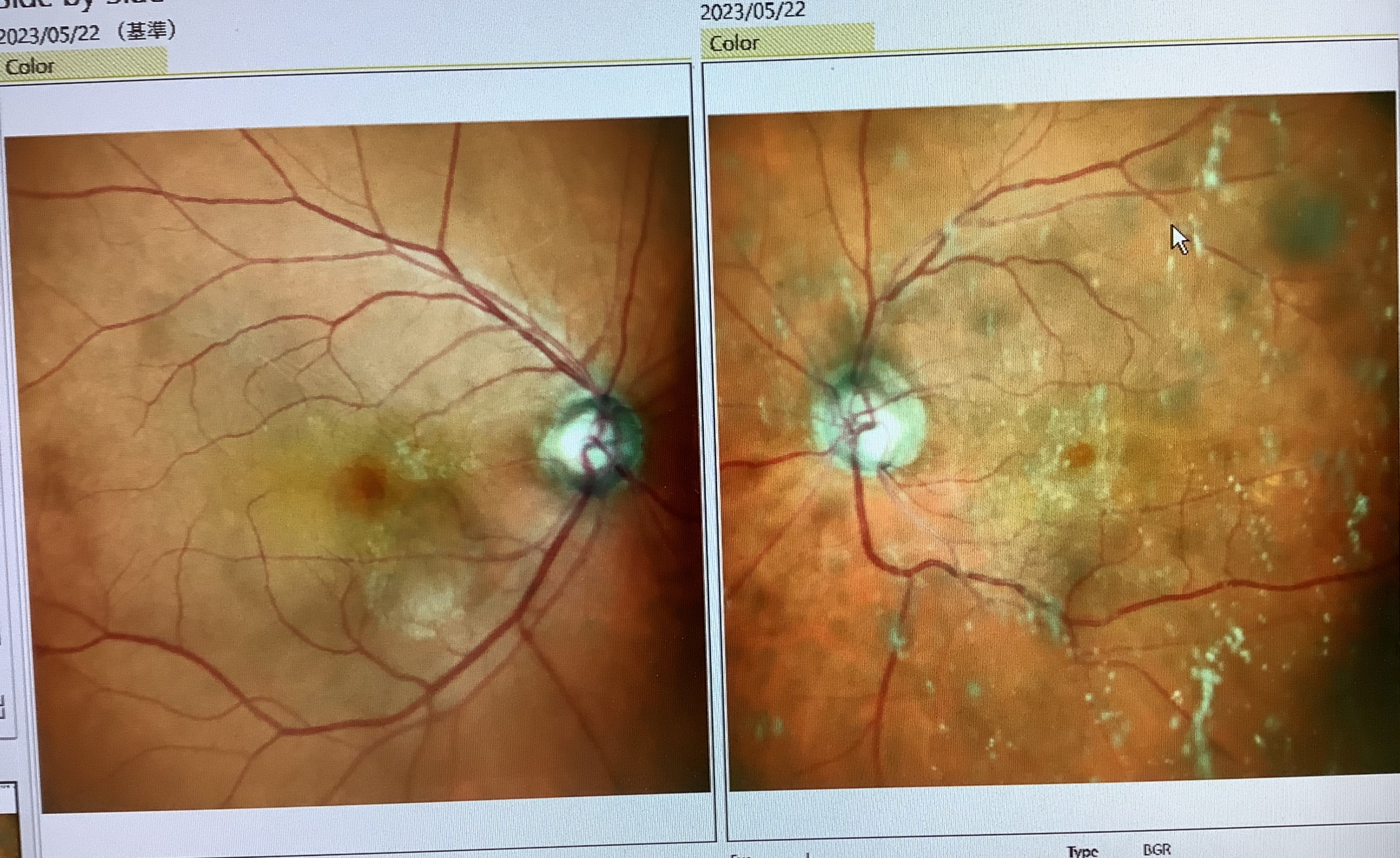 ちなみに、この患者さまは白内障の手術をしてくださった先生から、事前に黄斑上膜の存在は伝えられており、『黄斑上膜の手術は大手術だからしません。白内障だけしますか?』と聞かれ、同意の上、白内障手術を受けたそうです。白内障と黄斑上膜がある場合、明らかに黄斑上膜の影響が強いと思われれば、白内障と黄斑上膜を一緒に手術することが多いですが、黄斑上膜の影響がはっきりしない場合、白内障手術だけ行うことは決して悪いことではないと思います。ただ、白内障の手術だけして、視力の改善が乏しい時は、黄斑上膜の影響が思った以上にあったと考え、追加で黄斑上膜に対する硝子体手術を検討する必要があると思います。硝子体手術は確かに白内障手術に比べれば、“大手術”かもしれませんし、合併症もありますので、安易にすべきではない手術ですが、基本的には十分安全に行える手術であり、病気の状態によっては当然行ってもよい手術だと思っています。