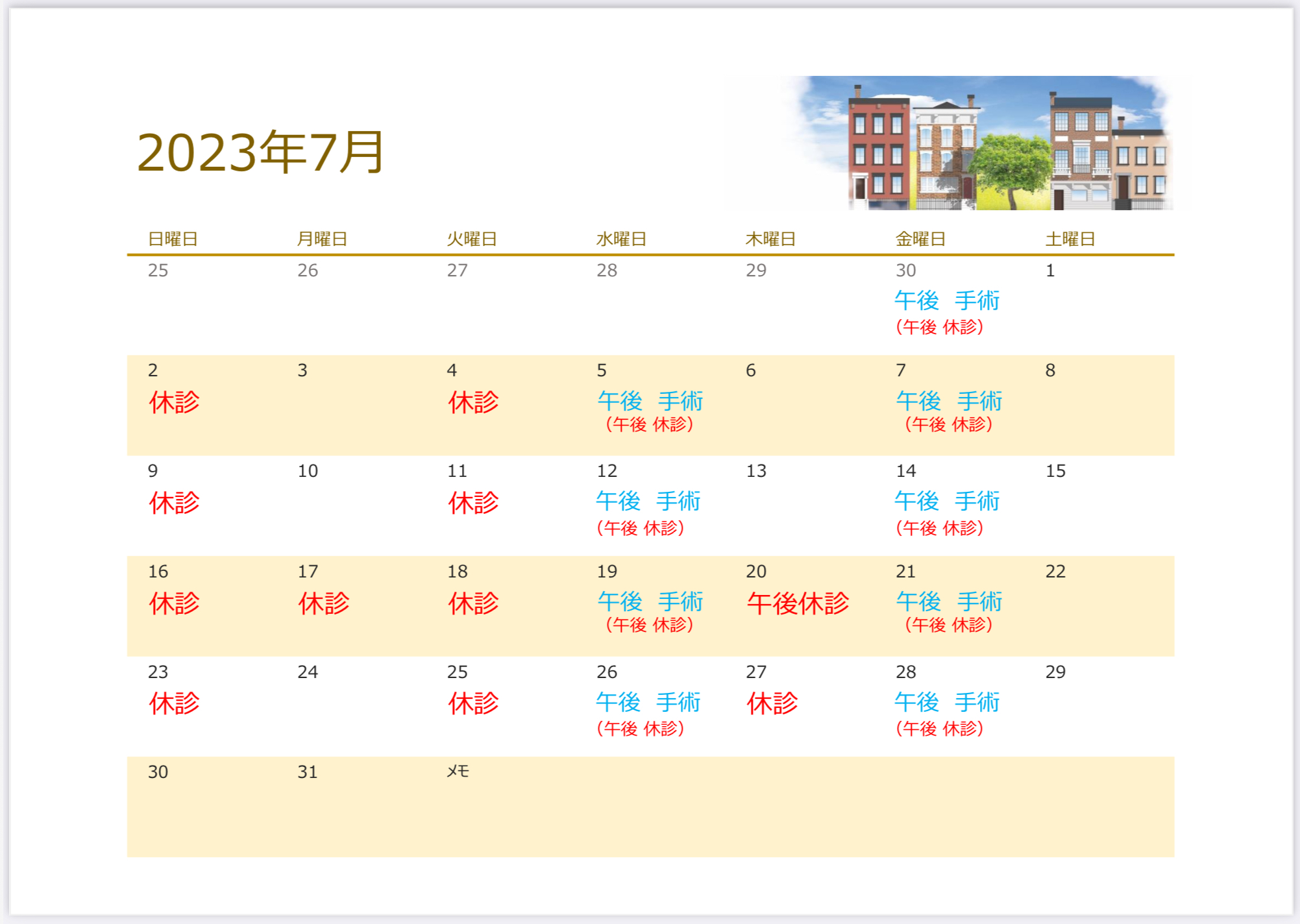 今月の診療カレンダーを更新しました。