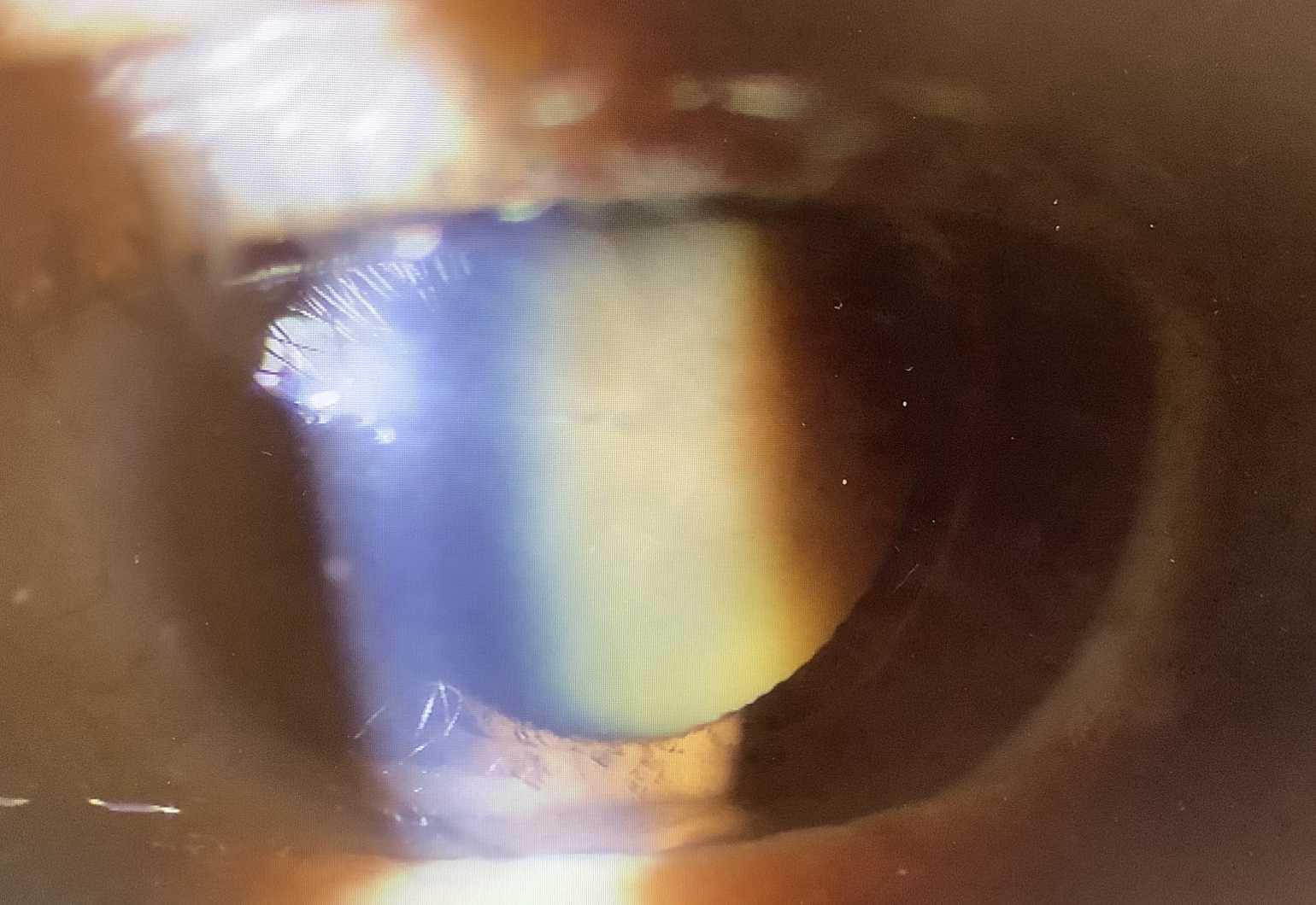 白内障は水晶体が濁ってくる病気で、基本的に白く濁ることが多いので、“白”内障と呼ばれています。しかし、全ての白内障が白い訳ではなく、進んでくると、水晶体の濁りは黄色く、また更に進むと茶色く濁り、“過熟白内障”と呼ばれます。水晶体が熟した状態ともいえるかもしれませんが、果物が熟すと柔らかくなるのと違い、水晶体は熟すと硬くなってしまいます。硬くて視力が極端に下がっているとしても、その濁りをきれいに取ってあげれば、見え方は十分に回復が得られます。しかし、柔らかい濁りに比べると、硬い水晶体を取り除くには、眼の中の炎症が強く出やすかったり、角膜の細胞がダメージを受けて極端に減ってしまったり、水晶体嚢が裂けて前嚢亀裂や後嚢破損を起こすことや、チン小帯に負担がかかり水晶体嚢が残せなくなってしまうことなど、眼に対する負担やリスクがそれなりに大きくなってしまいます。