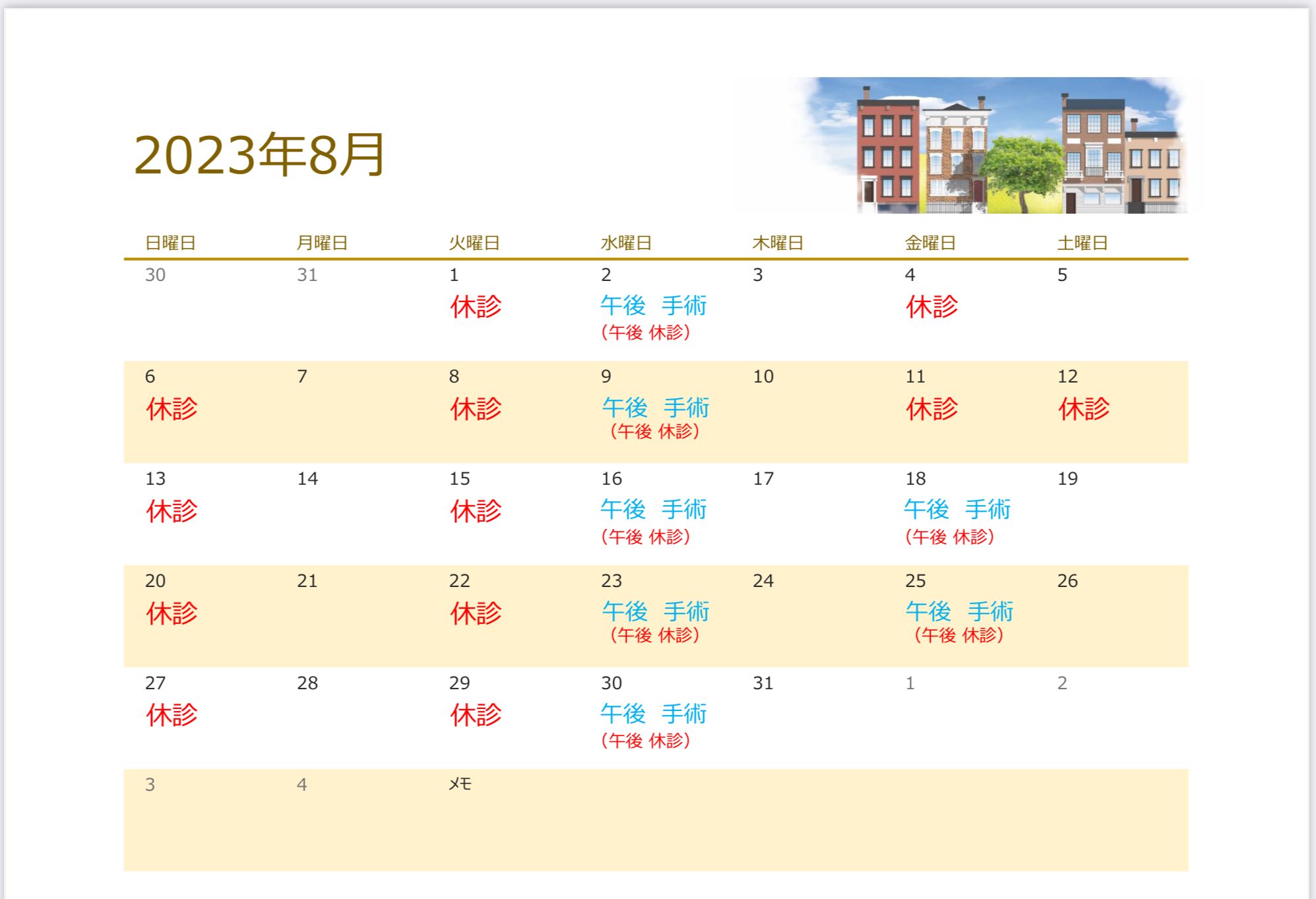 今月の診療カレンダーを更新しました。