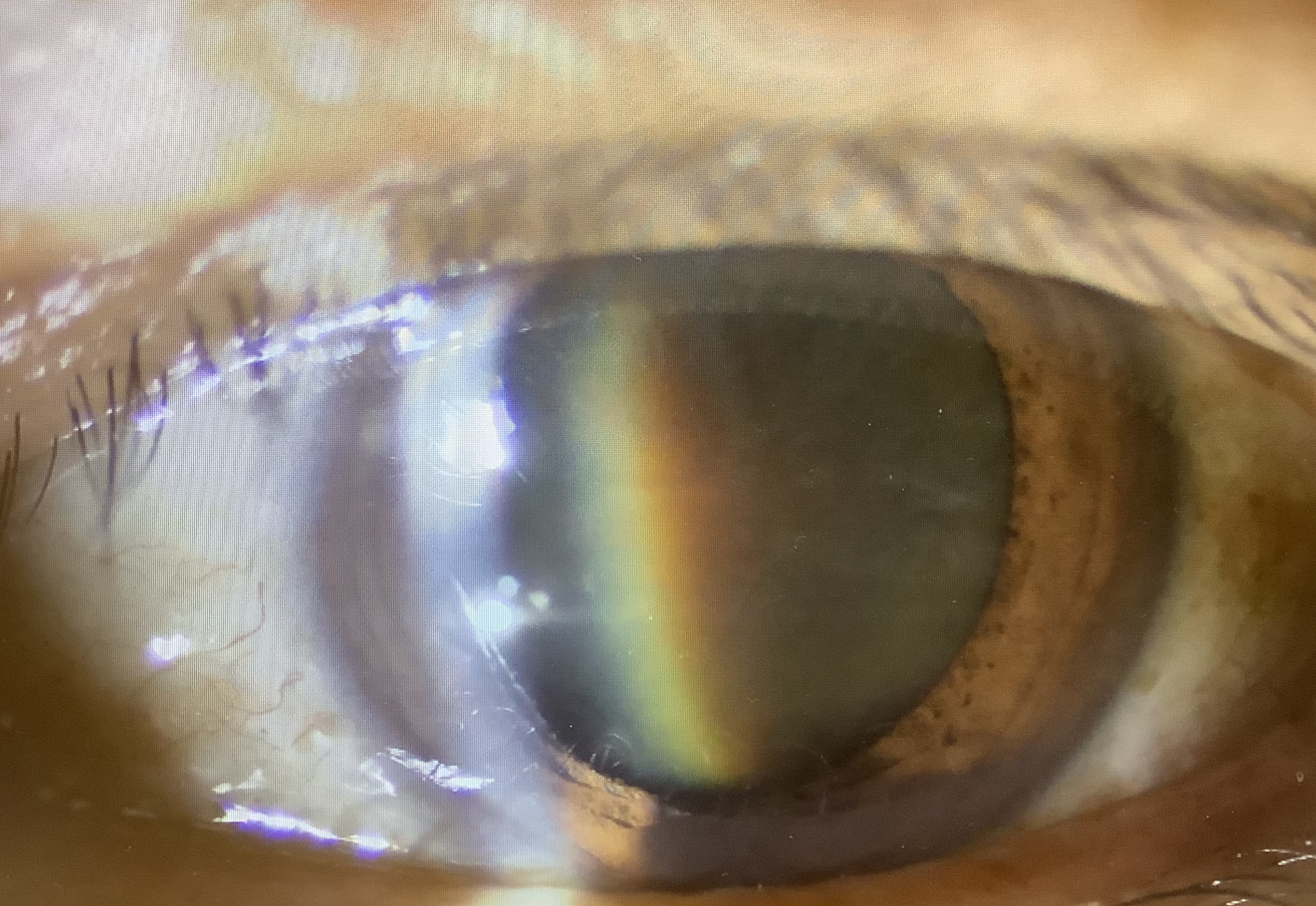 今日の硝子体手術の患者さまは50歳の男性で、かなり進んだ白内障があり、白内障の手術をメインで考えていたところ、検査で黄斑上膜も認めたため、白内障と硝子体同時の手術を行うこととなりました。