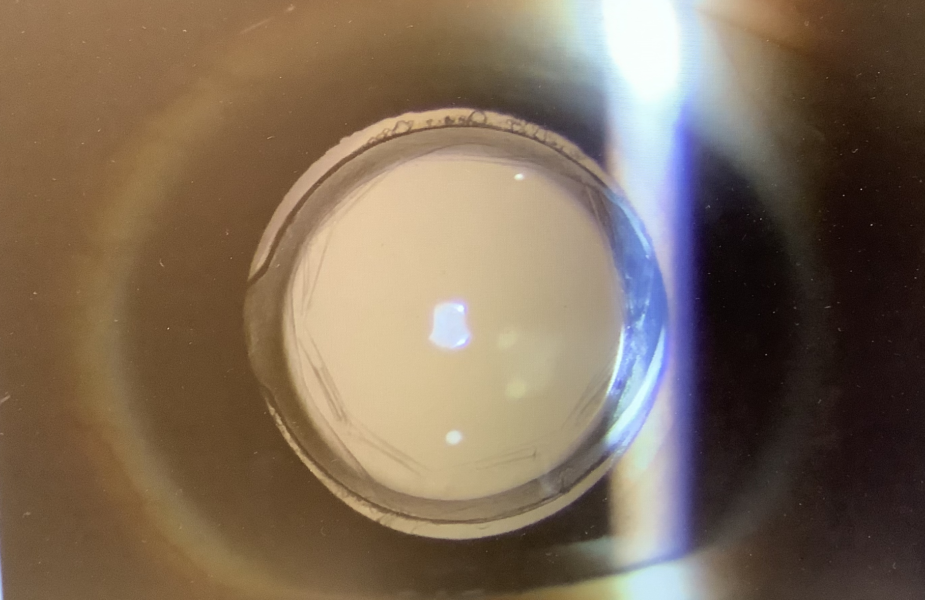 白内障手術の後のピントを変える場合、眼内レンズを入れ換えれば一番、単純で根本的な対応になると考えていますが、この患者さまの場合、見えにくさの原因が後発白内障では?とされ、既にYAGレーザーで後嚢が切開されており、レンズの入れ換えがやりにくい状況になっていました。入れ換えはできなくはないと思われますが、眼には負担になってしまい、よくなるかどうか不確定な要素が強い状況では、選択しにくい治療と思いました。一方、アドオンレンズは後嚢の有無は難易度に全く影響せず、今入っている眼内レンズの上に乗せてあげればよいだけの比較的侵襲の少ない治療で、尚且つ、もし入れてうまくいかなかった時でも取り出しは容易で“後戻りができる”治療でもあり、治療効果の見通しがはっきりしない時にはしやすい治療でもあると思います(そういう点では、後発白内障のレーザー治療をしていなくとも、アドオンレンズが第一選択になったかもしれません)。