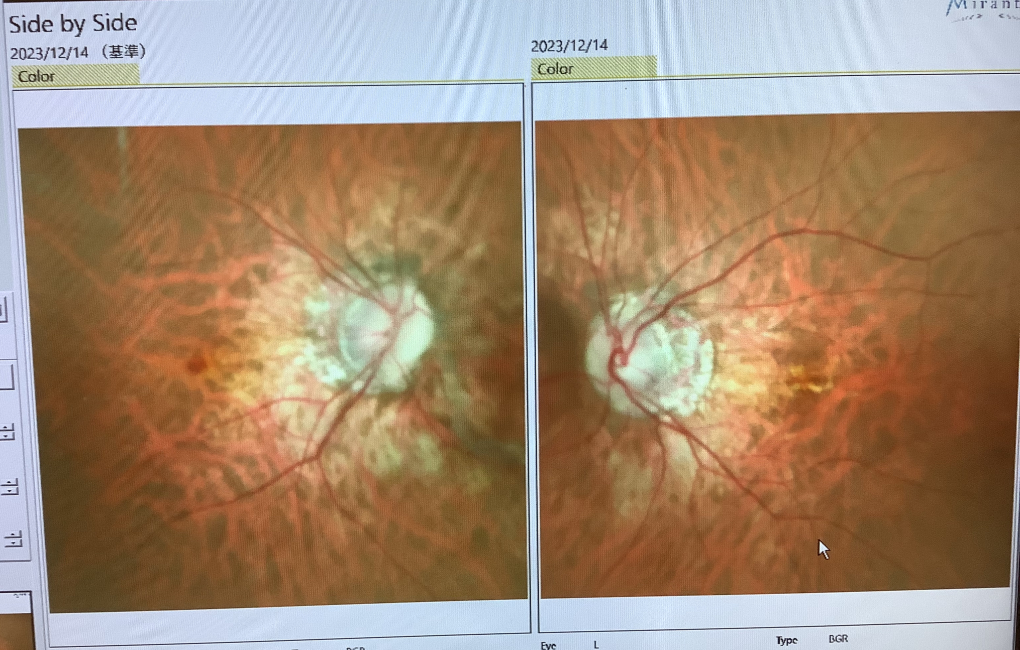今日の外来では『右眼の中心部が急に歪んで見えにくくなった』と男性の患者さまがいらっしゃいました。“中心部の歪み”というと、加齢黄斑変性(AMD)のような黄斑部に異常をきたす疾患が考えられますが、この男性はまだ23歳という若さでした。比較的若い人に起こる黄斑の病気としては、中心性漿液性脈絡網膜症(CSC)という病気もあるのですが、眼底を見ると、黄斑部に出血を起こしており“黄斑出血”が症状の原因と思われました。黄斑部に出血を起こすとなると、やっぱりAMD?とも考えますが、基本的にはAMDは加齢性の変化のため“60歳以降”というのが診断の条件となります。では何が黄斑出血の原因かというと、この患者さまは-20Dの超強度近視で眼軸(眼の長さ)が長く、その機械的な変化により単純に出血を起こしたと考えられました。AMDやCSCでは経過によって、積極的な治療が必要になることもありますし、強度近視の人には申請血管を生じることもありますが(この男性は、左眼は硝子体注射の治療を受けたようですが、確かに強度近視の眼では、新生血管が生じ、新生血管を抑える抗VEGF薬を注射する治療していたそうです)、単純出血であれば基本的には保存的に改善することが多いので、止血剤の飲み薬を処方して経過観察とさせていただきました。ちなみに、この男性は中国からの留学生でまだ日本に来たばかりだそうですが、日本語がとても上手で助かりました(ありがとうございます!)。