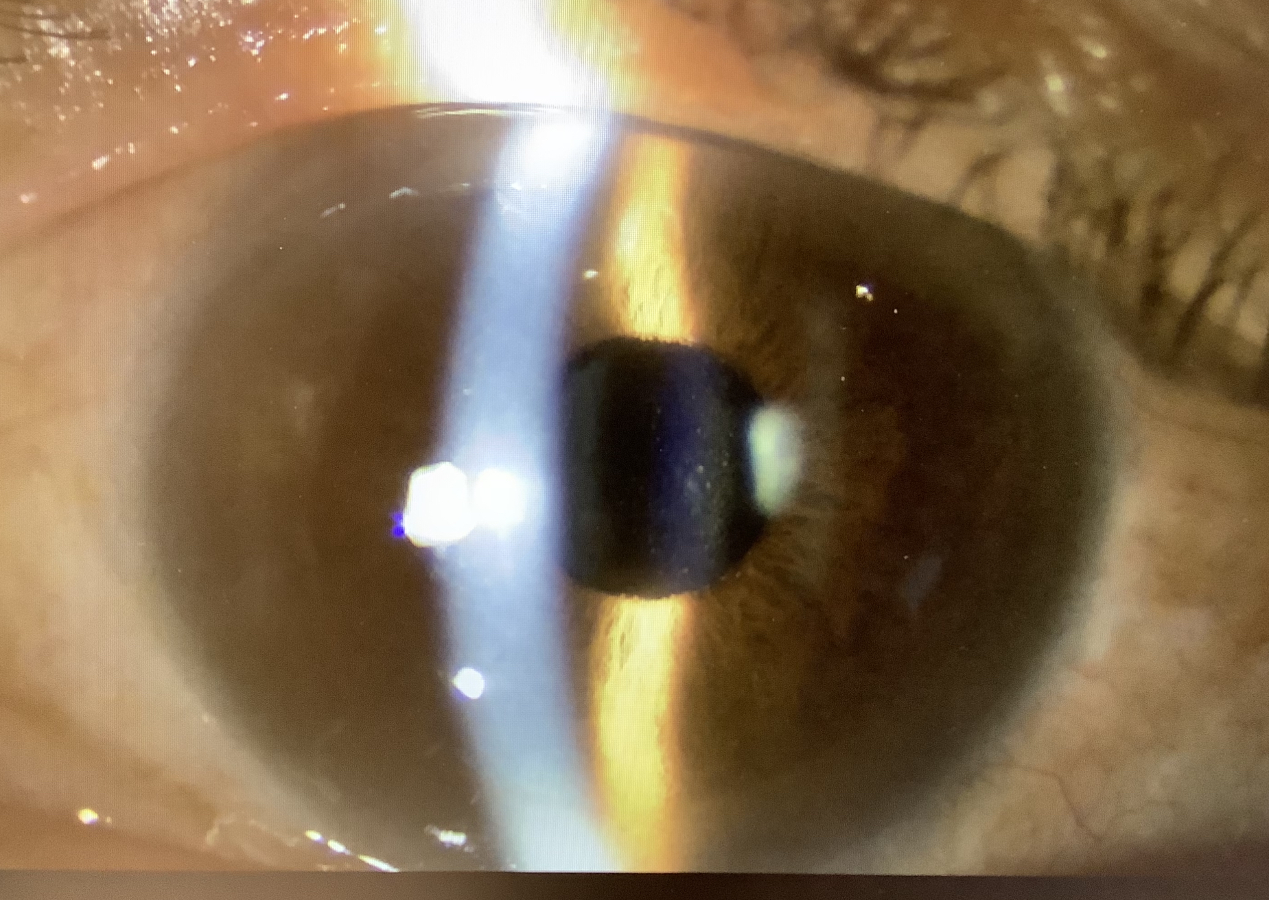 今日、眼内レンズ交換を予定させていただいたのは50代後半の男性で、約2年前に当院で眼内レンズ交換を行った方で、裸眼遠方視力が弱かったため、通常の単焦点レンズをアイハンスへ換え、後発白内障のYAGレーザー切開後で嚢内固定が難しく、嚢外固定で挿入していました。アイハンスなど現在主流のレンズの形状は“ワンピースレンズ”でレンズの本体(光学部)と支えの部分(支持部)が一体型になっています。一方、光学部と支持部が別の素材で組み合わせて作られる“スリーピースレンズ”もありますが、こちらは支持部が細いため、水晶体嚢の中にレンズを入れる嚢内固定だけでなく、水晶体嚢の外側にレンズを入れる“嚢外固定”でも使用可能なレンズになります。アイハンスのようなワンピースタイプは嚢外固定には本来、適応外となりますが、患者さまの希望もあり、リスクについて十分説明した上で、嚢外固定で使用させていただきました。術後しばらくは問題なかったのですが、今回、問題となってしまったのは、眼圧上昇で、元々、緑内障があったものの10台前半だった眼圧が20台中盤となり、緑内障も進行していまいました。眼圧が上がる機序としては、厚い支持部により、隅角が圧迫される可能性と、虹彩との接触で、虹彩色素が飛び、線維柱帯に目詰まりを起こし、眼圧が高くなってしまったと思われます。そのため、レンズをスリーピースに換え、同時に、線維柱帯切開(トラベクロトミー)を加え、眼圧が下がるような処置を一緒に行う手術を予定させていただきました。ただ、この手術で眼圧が十分下がらない場合は、線維柱帯切除術(トラベクレクトミー)を追加で行う必要があるかもしれないと話させていただきました。アイハンスでの見え方がよかっただけに、若干、粘り過ぎてしまったのが反省点となってしまいましたが、眼圧を下げ、今の視野を少しでも残せるような手術ができればと思います。