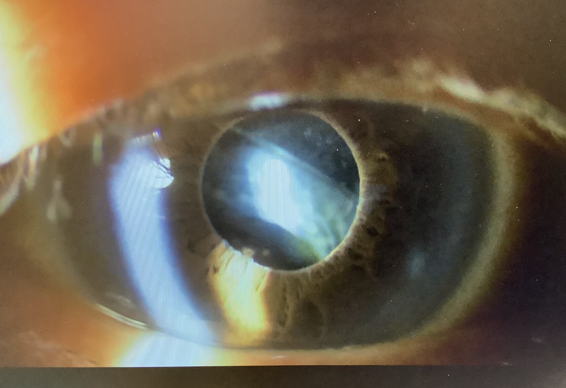 今日、左眼の強膜内固定の手術の申し込みをいただいたのは、86歳の男性の方ですが、この方は右眼の強膜内固定を当院で令和元年の5月15日に行っています。元々、僕が以前、勤めていた病院(上白根病院)で白内障の手術をさせていただき、水晶体の支えが弱く、チン小帯断裂が起きてしまい、レンズを入れられずに終わったのですが、ちょうど僕が退職する前だったため、開業してからレンズを入れる手術をさせてくださいと約束させていただきました。そのため、右眼の強膜内固定(硝子体手術)は、当院の最初の手術日に、内眼手術(眼の中に入る手術)では初めて行う手術となりました。硝子体まで行うクリニックでも開業して最初の内眼手術は、手術の程度としては軽い白内障手術から始めることがほとんどではないかと思いますが、前の病院の時から、約束していて、予約としては一番だったことと、何より、レンズが入っていないとピントが合わずに見えにくくて不便をかけてしまっているのが申し訳なくて、一番で手術させていただきました。その後の右眼の経過は良好で、左眼の白内障もあったため、同じ年の6月に手術していましたが、やはり程度の差はあれ、左眼もチン小帯が弱く徐々にチン小帯断裂が進んでレンズがズレてしまったと思われます。