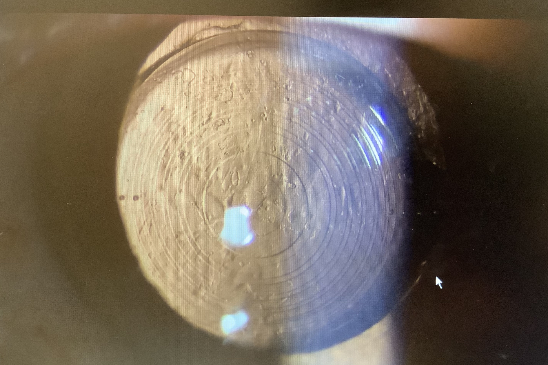 ハローグレアの症状もかなりきつかったそうですが、術後しばらく経っていたので、後発白内障が強くなり、視力も0.2程に低下している状態でしたが、元々の異常光視症の改善を第一に単焦点レンズ(アイハンス)に入れ換える手術を予定させていただきました。