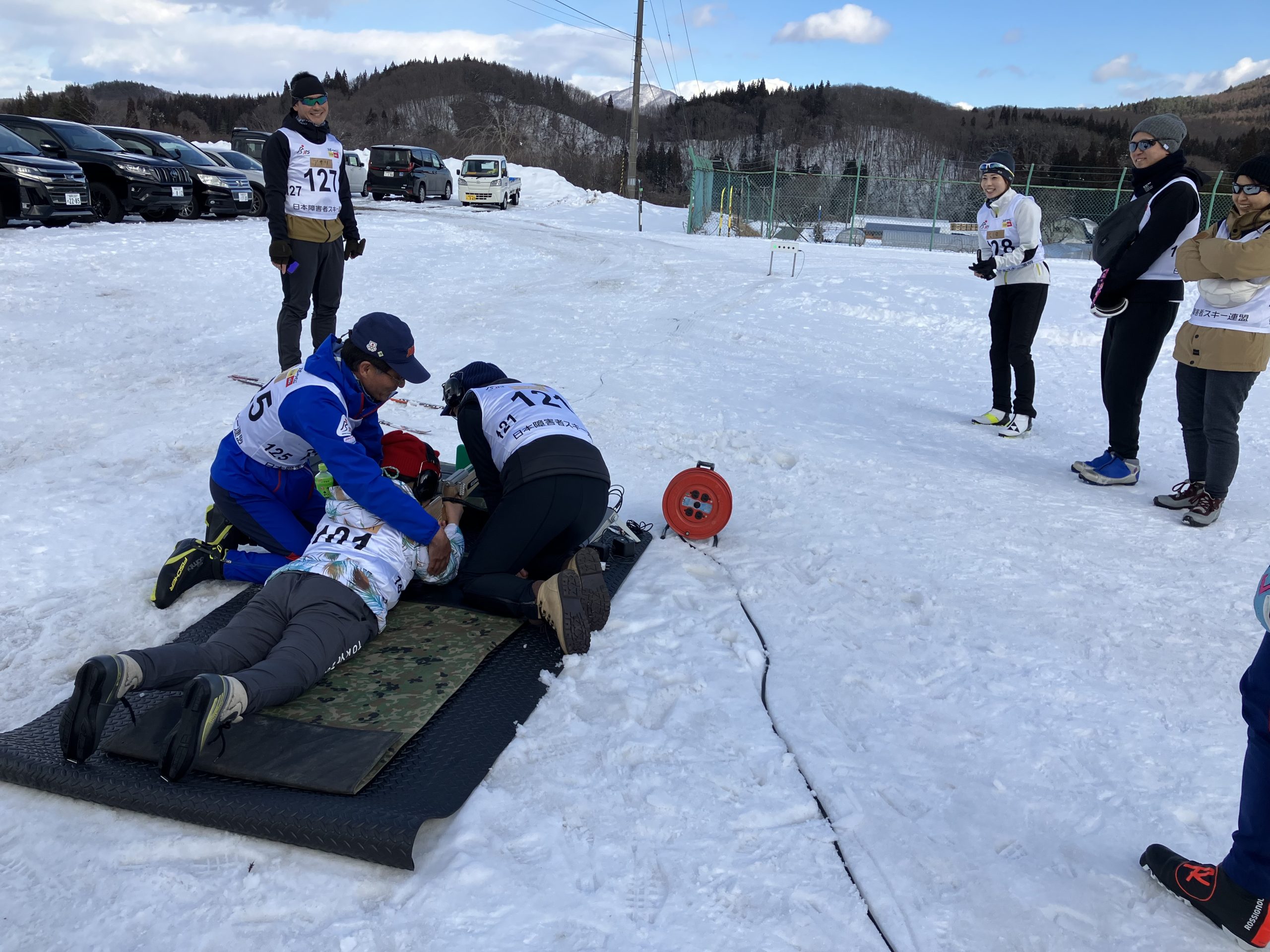 視覚障害や脚の不自由な子どもたちや大人が参加していましたが、ガイド役には岩手県を中心に東北地方のクロスカントリースキーの選手の方々が熱心にサポートされていました。視覚障害の参加者の一人は、秋にあった東京都の選手発掘プロジェクトでお話しした女の子が東京からわざわざ来てくれてうれしかったです。