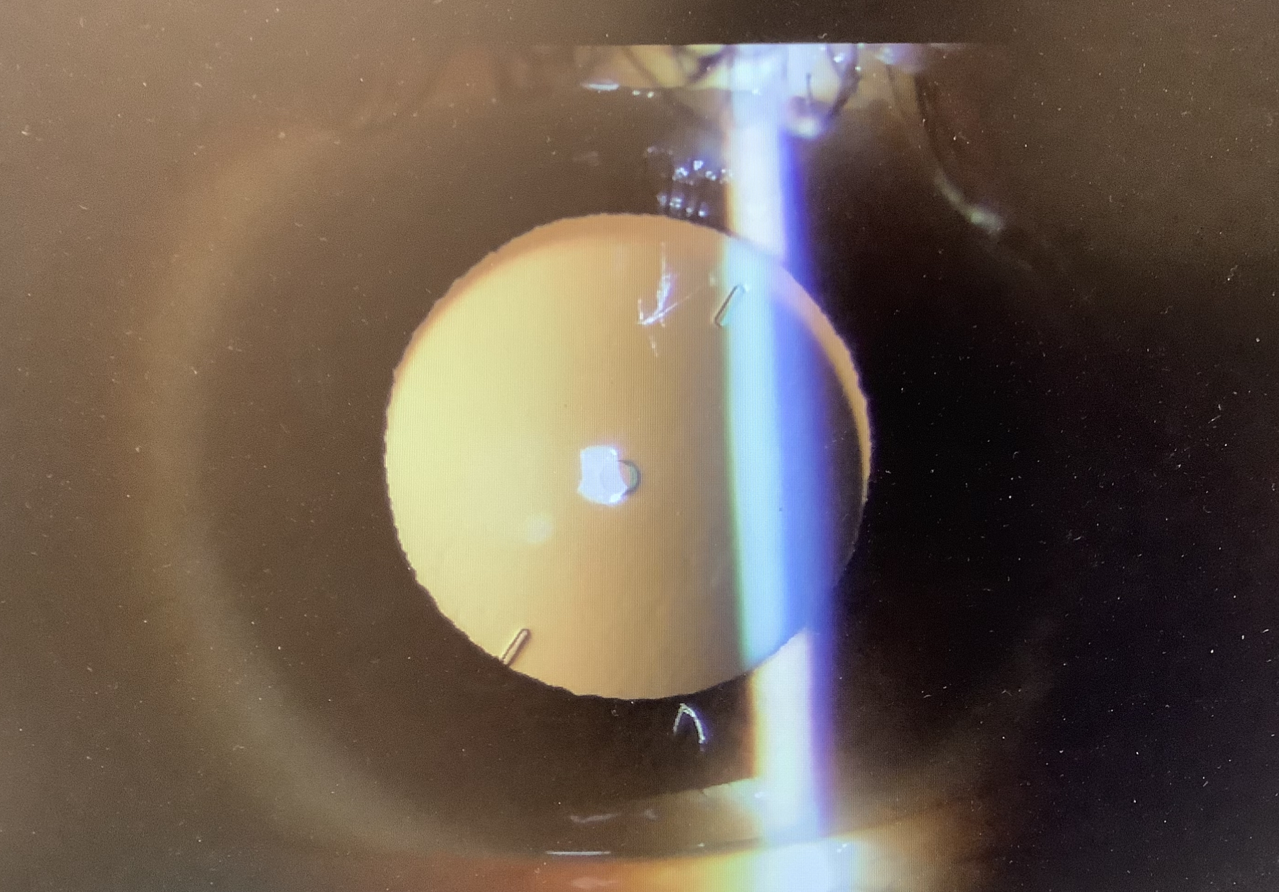 先月、ICLの手術を受けていただいた40代前半の女性の方は、遠方を少し落とすような見え方を希望されたので、通常より1段階弱い度数でレンズを選択しました。しかし、視力は右0.3〜0.9 左0.6〜1.0程度と思ったよりも遠方が見えにくいと感じてしまい、せっかくのICL手術で裸眼で遠くが見えにくいというのはよくないので、レンズを入れ換える再手術を予定させていただきました。