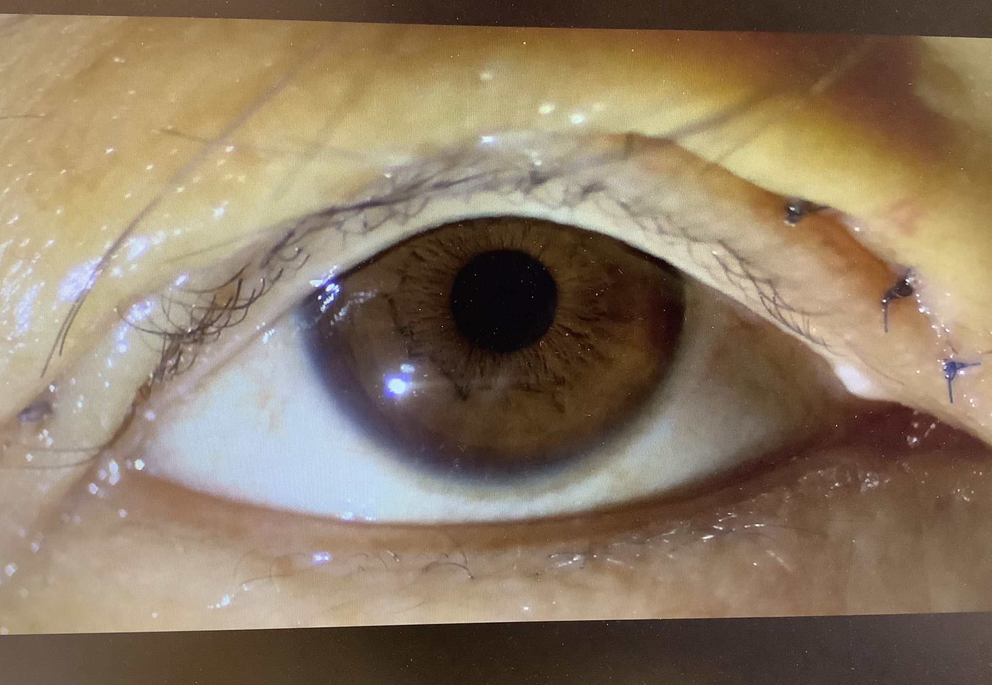 眼瞼下垂の術後は約1週間で抜糸をしていますが、先週、眼瞼下垂の手術を受けた60代前半の女性の患者さまから、『右眼が三角になっている』という訴えがありました。眼瞼下垂の手術は色々な術式がありますが、僕はまぶたを持ち上げる眼瞼挙筋(正確には筋肉そのものでなく腱膜)をまぶたの中の骨組みのような組織である“瞼板”に縫い縮める方法で、基本的に1針縫っています。通常、この1針でまぶたの形状は自然なカーブを作ることが多いのですが、腱膜を短縮し過ぎたり、縫い付ける位置が悪かったり、瞼板が柔らかいと、1点で強く吊り上がってしまい“三角眼”になってしまうことがあります(よく言われる『和田アキコさんのようになりませんか?』というのはこの状態だったのではと思います)。腱膜の短縮具合や縫い付けの位置を修正すると、吊り上がりが弱くなってくれますが、それでも形がよくない場合は、もう1針2針追加して形を整えて手術を終えるようにしています。しかし、手術終了時点でよくても、術後に思ったようなまぶたの形でなかったり、徐々に変化してきてしまうこともあり、あまりにもおかしいような時は再手術で修正を行うこともあります。僕は眼瞼下垂の手術は基本的に保険診療で行っており、保険手術の目的は機能の改善で、見た目は問題としないとも考えられますが、とはいっても挙がり方があまりにもおかしい場合は、手術の合併症とも捉えられ、再手術の適応になると考えています。その場合、すぐには保険での再手術はできませんし、術後、まぶたの状態が落ち着いてから再手術をすべきなので、術後3か月程度は経過を見てから再手術を行うべきと考えています。ただ、あくまで再手術の適応になるのは、“あまりにひどい場合”で、僅かな問題をまた保険の手術で治して欲しいと言うのは保険診療の本分から外れますので、どうしてもの場合は自費手術での修正になるかと思います。その基準も主観が入り難しい部分もありますが、一般的には“保険診療の眼瞼下垂手術では見た目の問題は受け入れない”という考えが基本にはなります。その保険の手術でも“明らかにひどい”という状況というのは、手術の合併症とも考えられますので、そのような時は保険での再手術の適応となるとお考えいただければと思います。