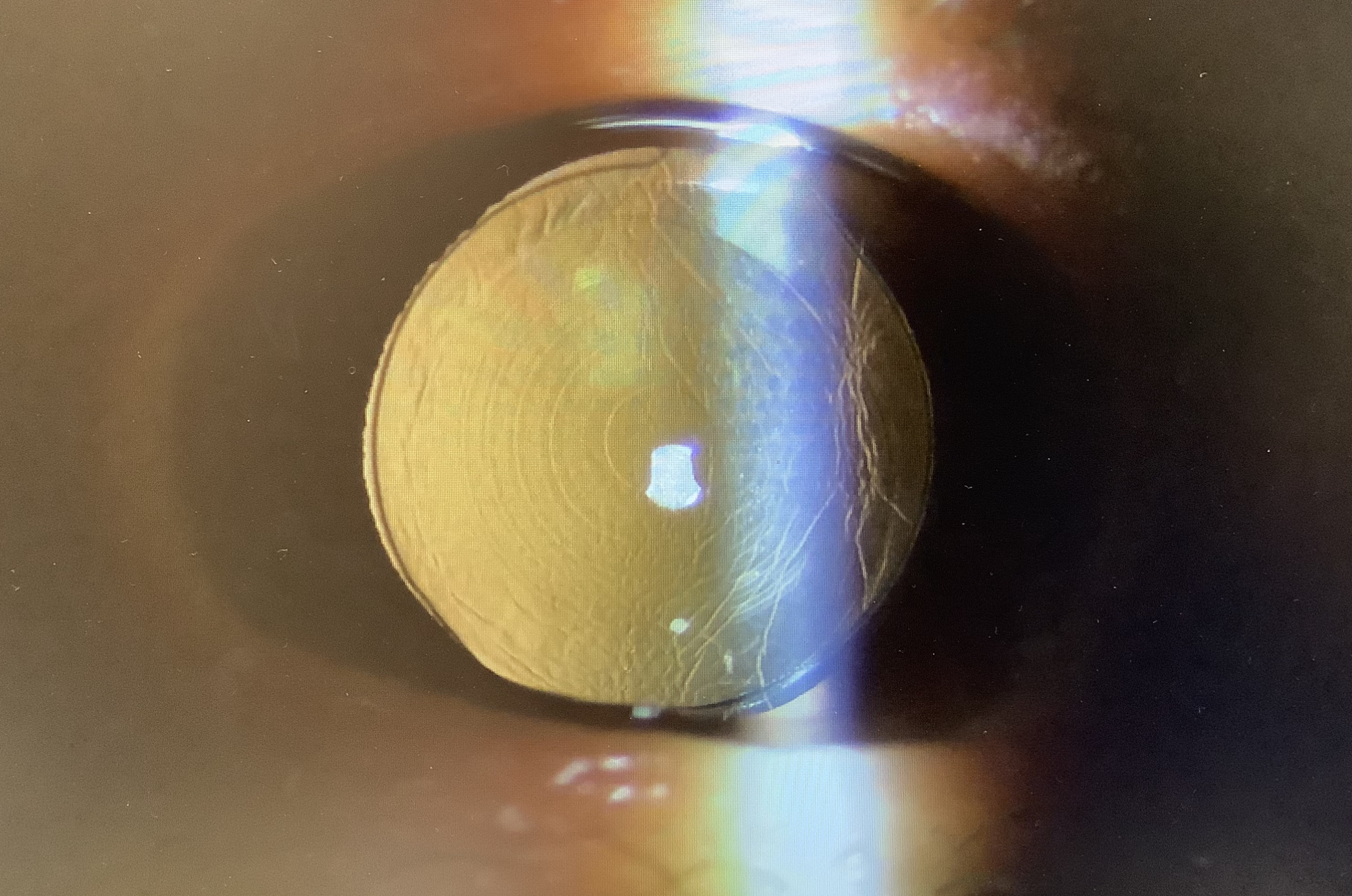 4月に当院で両眼ともVivityを使った白内障手術を行わせていただいた50代後半女性の方が、『近くが見えにくくて、5焦点レンズに入れ換えたい』ということでしたが、海外輸入レンズのため、手術日は2か月くらい先になるとお話したところ、早く手術してもらえるところがあると、5月下旬に他院で右眼の入れ換えを結局、パンオプティクスで行い、『近くも遠くも余計見えにくい』といらっしゃいました。レンズの特性上、Vivityよりはパンオプティクスの方が基本的に近くは見えるようになります。レンズもきれいに入っていますし、度数計算もバッチリでしたが、本人的に見えにくいと感じているのは、パンオプティクスの方がコントラストがやや下がるので、全体的なスッキリ感は多少下がったように感じている可能性はありますが、おそらくは後発白内障の影響と思われました。通常、後発白内障はゆっくり進むことが多いですが、レンズの入れ換えをすると、急激に進むことがたまにあります。それほど強い後発白内障でもないのではっきりしたことは言えず、しばらくは様子を見ることになりますが、実際に見えにくさの原因が後発白内障であれば、時間の経過で更に見えにくさが進むので、それが判断の基準になるかと思います。もちろん、後発白内障はレーザーで濁りを取り除いてしまえば、見やすくなるので、その治療をすることで原因がはっきりしますが、後嚢を破ってしまうと、レンズの入れ換えが困難になってしまうので、YAGレーザーの治療をする判断は慎重にする必要がありますし、もしYAGレーザーをするとなっても、万が一のレンズ交換に備えて、後嚢の切開は少し小さめに行うことが大事かと思っています。