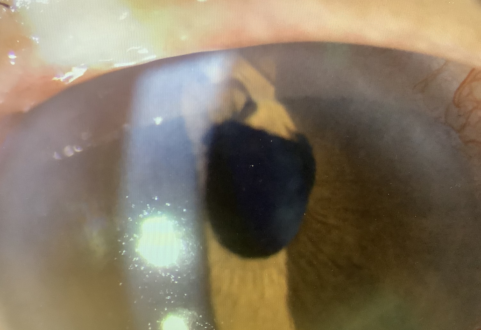 昨日、問題なく白内障の手術を終えたと思った50代後半の患者さんが、術翌日の今日の視力検査で思ったより視力が出ず、屈折の結果も予想より近視気味でおかしいなと思いながら、診察したところ、レンズの支えの一方が水晶体の袋から出て、虹彩の前に出ている“眼内レンズ脱臼”という状態でした。水晶体嚢の前面の切開(前嚢切開)が適切な大きさで、きちんとレンズの支えを水晶体嚢の中に収めた場合、術後に支えが出てしまうことはないと思うので、入れたと思ったものがうまく入っていなかったか、何らかの手術操作が影響して出てしまったかだと思われましたが、待っていて自然と元に戻るものでもありませんので、今日、そのままレンズの位置修正をさせていただきました。まだ術翌日ですので、切開のキズもくっつききっていないため、サイドポートを鈍的に開け、レンズの支えを水晶体の中に入れました。簡単な処置とはいえ、患者さんには連日で手術室に入っていただくことになってしまい、申し訳ありませんでしたが、これで見やすくなると思いますので、ご安心ください。