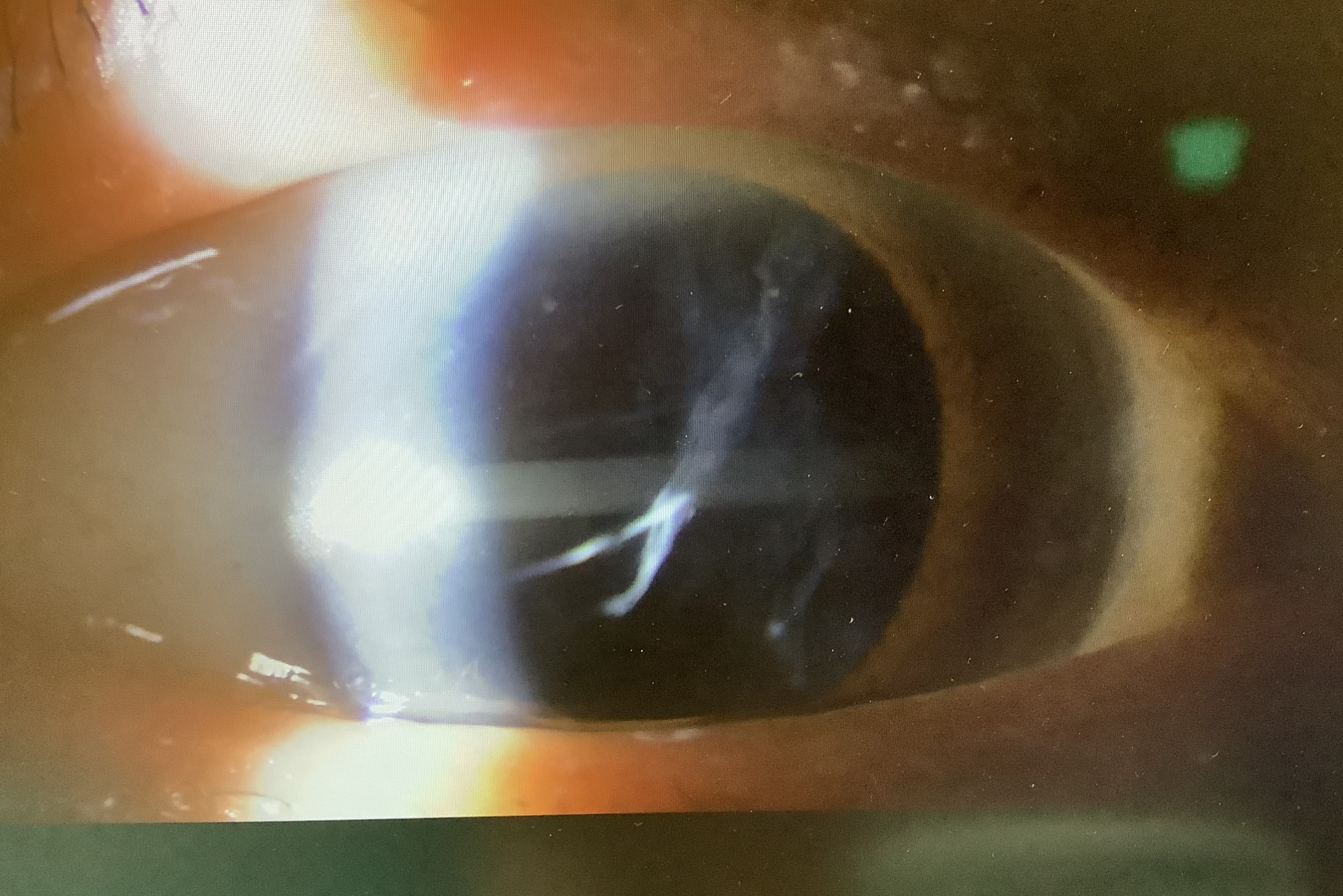 眼の状態を見させていただくと、右眼は眼内レンズが全く見えず、『あれ、右眼のレンズがズレてしまった?』と思い、『見えにくいのは右眼ですか?』と聞くと、『いえ、右はずっと見えなくて、今回は左眼です。』とのお答えで、左眼も見ると、確かに、左眼のレンズも眼の底に落ちかけていました。よくよくお話を聞くと、右眼はずっと前、白内障の手術を受けた際に『レンズが入れられなかった』と言われ、そのままで過ごしていたようです。