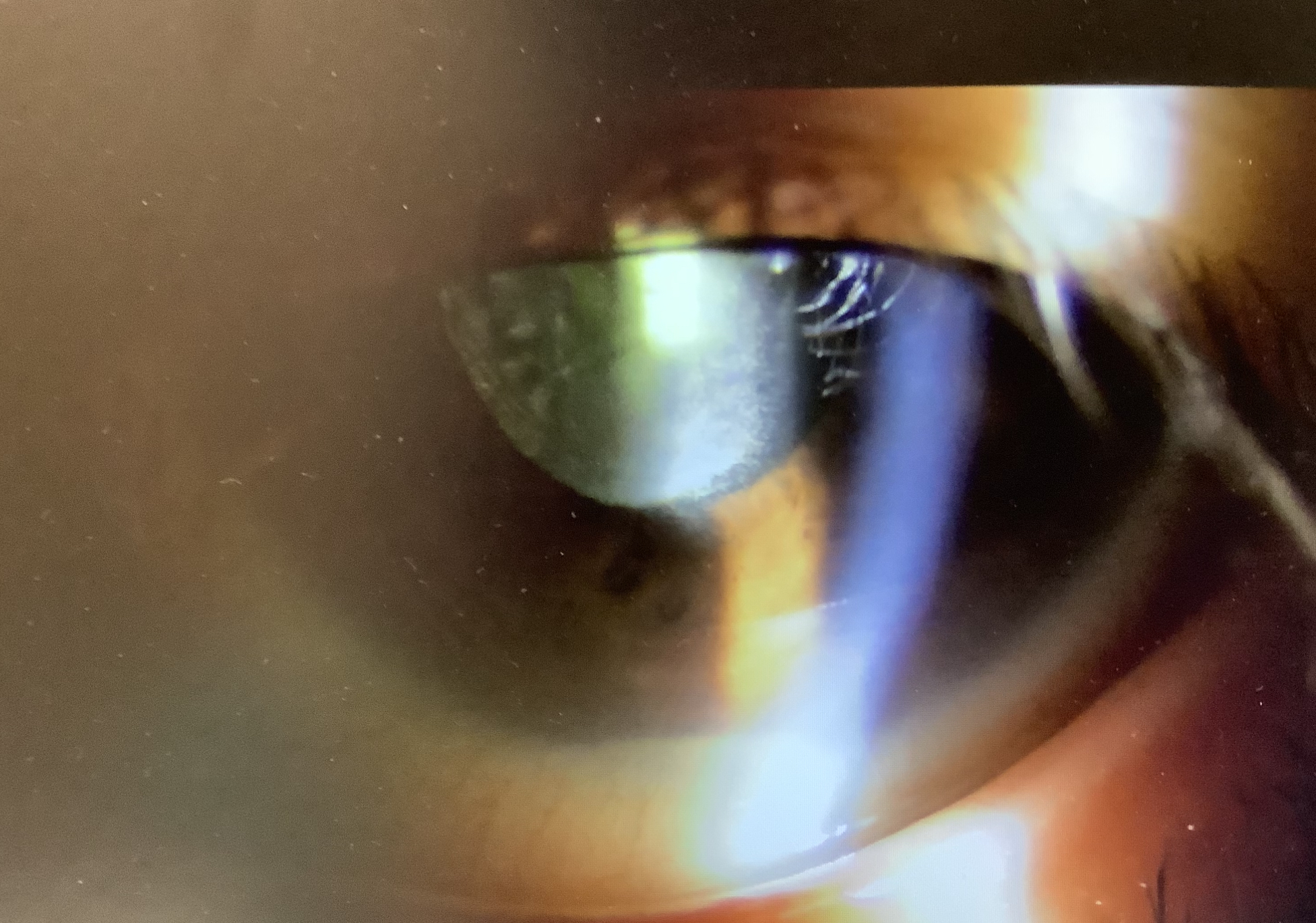 その中で、水曜日に左眼の手術をした70代の男性の方は、炎症細胞が強く出ており、瞳孔にもフィブリンが張っているような状況で、”眼内炎“という状態と考えられました。炎症の原因が細菌などの感染によるもの(感染性眼内炎)と感染以外の原因(無菌性眼内炎)とがありますが、術翌日は問題なく、ご本人に自覚も徐々に見えにくくなってという経過から、おそらくは感染性の眼内炎と思われました。硝子体までは炎症が及んでいないと思われましたので、今日は眼の中の前のスペースを洗浄(前房洗浄)し、硝子体に抗菌薬の注射をする処置を緊急でさせていただきました。