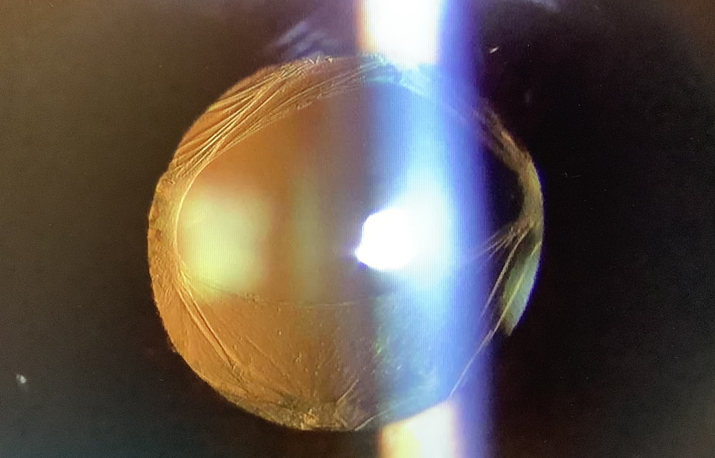 今日、外来受診された40代の男性の方は先月、他院で単焦点レンズで白内障の手術を受け、後嚢破損のため、レンズが落下してしまい、更に他の施設で硝子体手術を受けレンズを入れてもらったそうですが、術後からブレるような見え方が続き、『レンズが表裏逆に入っているのでは?』と心配されていらっしゃいました。