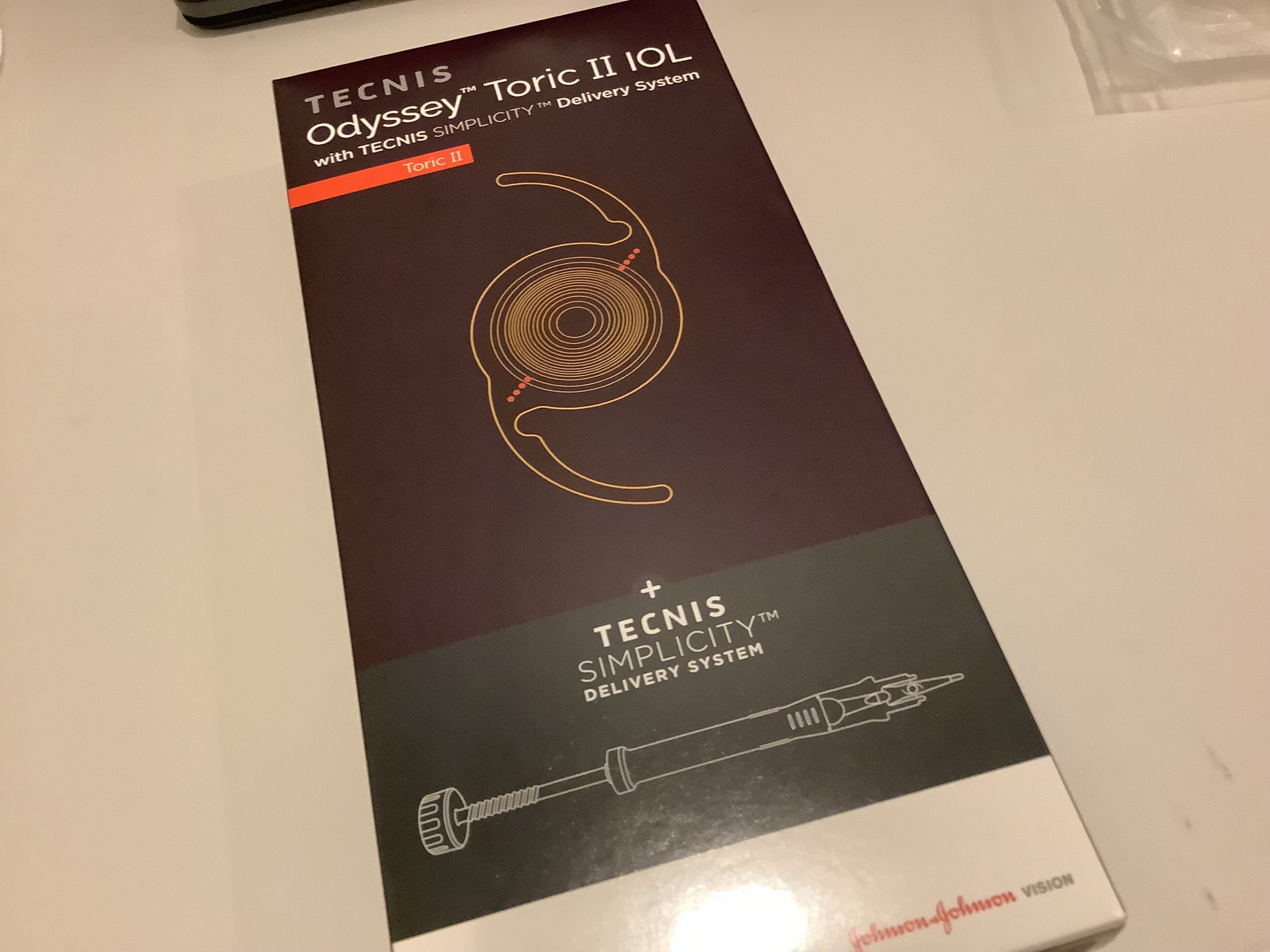 今日の白内障の手術では、新しくAMOから発売された多焦点レンズ“Odyssey(オデッセイ)”を使わせていただきました。AMOのメインの多焦点レンズはSynergyで、近方に強く、レンズもきれいでよいレンズだと思っていますが、異常光視症が強く出やすいという弱いところがありました。実際、僕は異常光視症が原因でレンズを単焦点へ入れ換える場合、Synergyが一番多く経験しています。なので、夜の運転をあまりしない、小柄な女性には向いているのですが、運転が多いような人には若干使いにくい面がありました。今回、発売されたOdysseyはハローグレアが出にくいように改良されており、今までよりも多焦点レンズとして使いやすく、適応の幅が広がるのではと感じています。