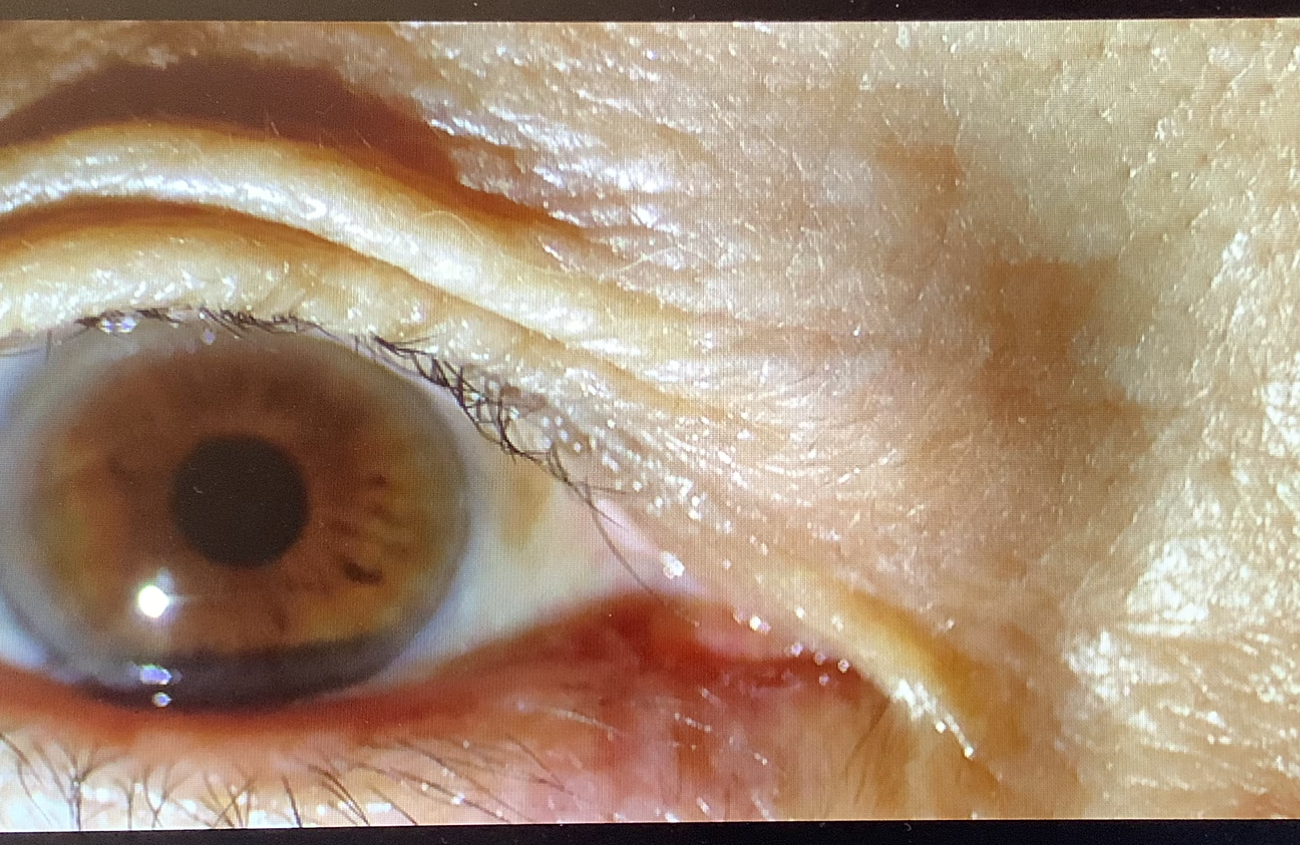 この膨らみを改善させるには、外科的に脂肪を切除するしかない訳ですが、この膨らみだけを切除するのは、単なる見た目の問題となり、厳密には保険診療の適応には該当しないと考えます。ただ、眼窩脂肪が出ている人は、通常、まぶたの弛みも出ていて、眼瞼下垂(偽眼瞼下垂・眼瞼皮膚弛緩)の状態となっているため、皮膚の弛みの切除をしながら、一緒に眼窩脂肪も切除するような手術を行うのであれば、保険診療の範疇でよいのかなと考え、眼瞼下垂の手術として予定させていただきました。