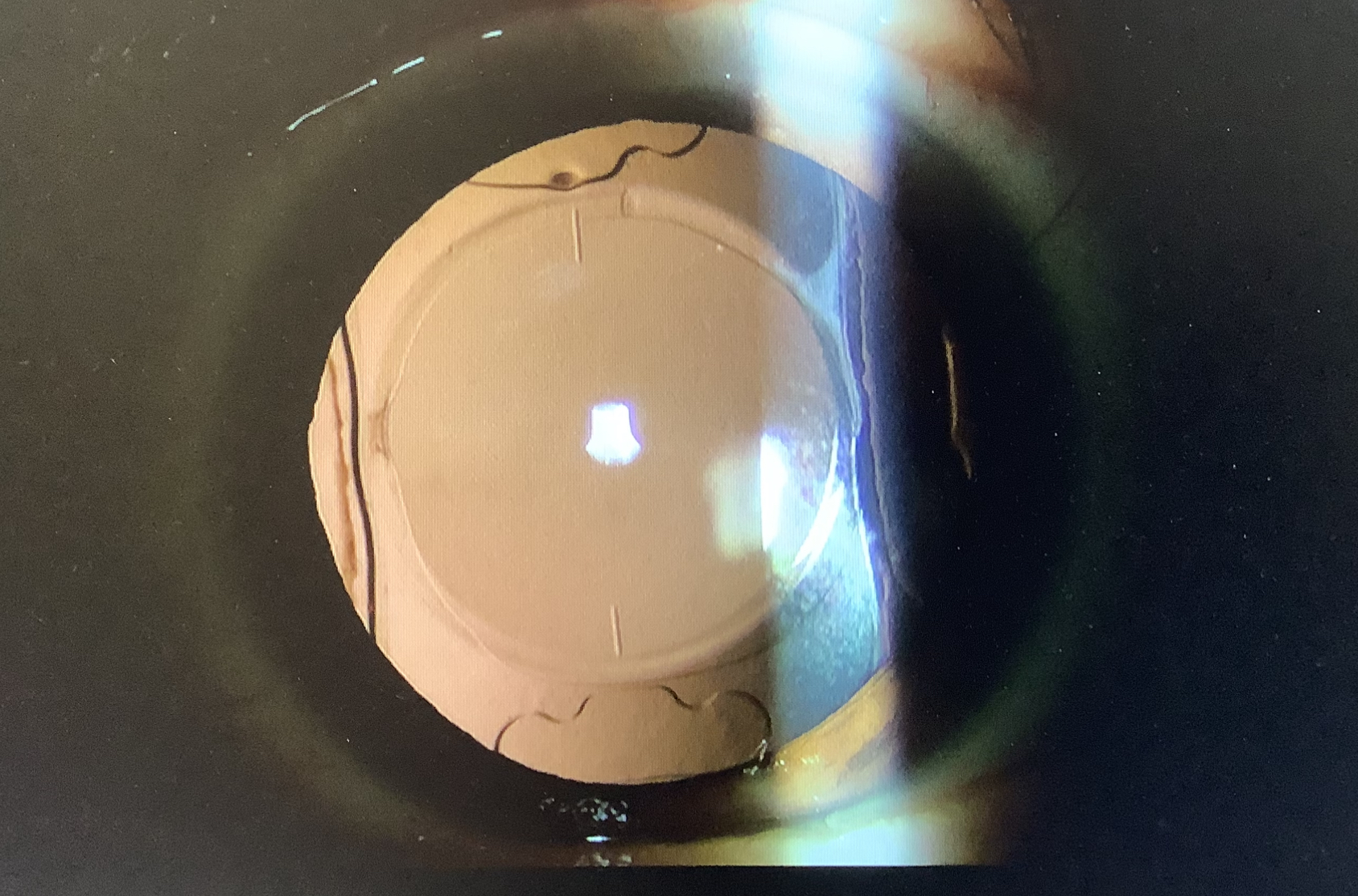 左右差は1Dほどで、極端には大きくなく、レンティスではあまり問題にならない差かなと思いますが、実際、前医でコンタクトレンズを使い左右差を消して見え方を試したところ、はっきりは見えなかったそうで、おそらく見えにくさの原因としては、レンズの構造によるものと思われました。