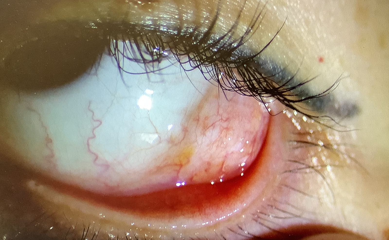 今日、手術を受けていただいた30代の女性の方は、昔から、左眼の白目の奥に盛り上がりがあり、大きくなってきたので切除を希望されました。