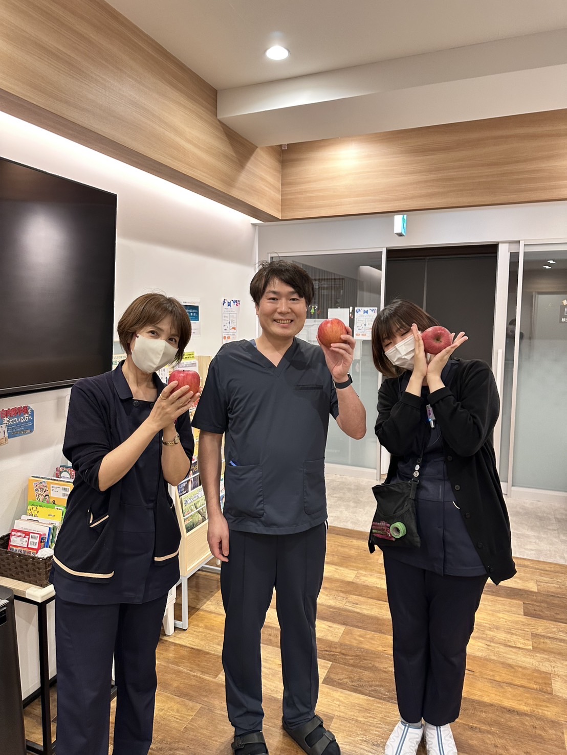 ↑後輩から送られてきたりんごと一緒に。どうもありがとう!