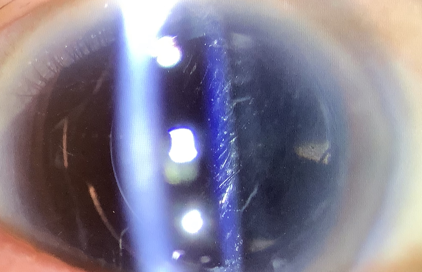 先週、眼内レンズの位置修正を行なった70代の女性の方はの経過観察の診察がありましたが、近視の値が−1Dから-0.5Dまで減少し、視力も裸眼0.7から0.9まで改善し、ひとまずは経過良好のように思えました。ただ、ご本人は、『前よりはよくなったけれど、やっぱりすっきりしない』とおっしゃり、レンズの入れ換えをして欲しいということでした。若干の後発白内障があるので、そのせいかなとも思いましたが、視力検査で矯正のレンズをかけて見た時はすっきり見えたとのことで、やはり度数の問題があるようで、確かにその分の度数を調整したレンズに入れ換えると改善する見込みがあると思われました。