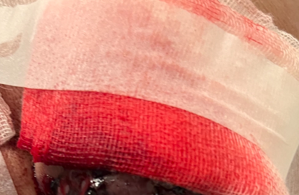 眼瞼下垂の術後に出血が続くことはたまにあるのですが、正直、ここまでひどい出血は初めてでした。この患者さんはエリキュースという抗凝固薬を内服していて、止めずに手術をしたので、出血がしやすい状態でした。抗凝固薬は、念のため飲んでいるような方で、止められれば内服を中止して手術していますが、休薬が体に悪い影響を与えそうな場合は、内服を止めずに手術しています。それでも今まではこんなに出血することはなかったのですが、出血が完全に止まっていなかったのに、傷を閉じれば止まるだろうと思って、傷をしっかり閉じてしまったことがよくなく、もっと止血をすべきだったと思いました。患者さんやご家族には負担をかけて申し訳ありませんでしたが、出血が止まって少しずつ腫れが引いてくると思いますので、経過を見させていただければと思います。
