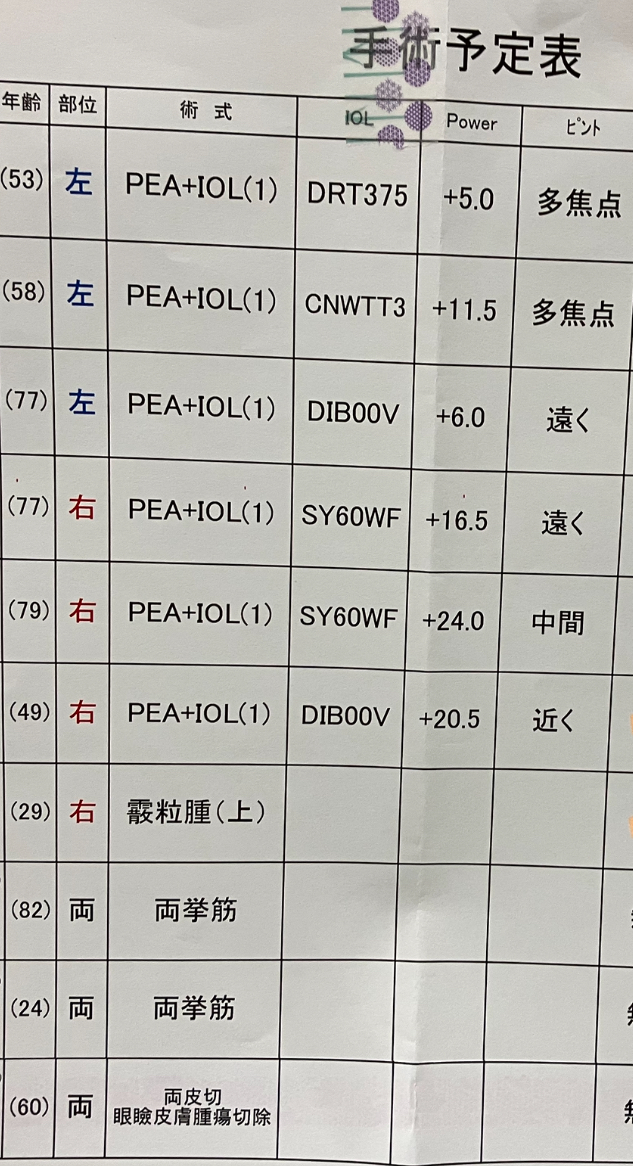手術の申し込みは、白内障2人、黄斑浮腫の硝子体手術1人でした。
