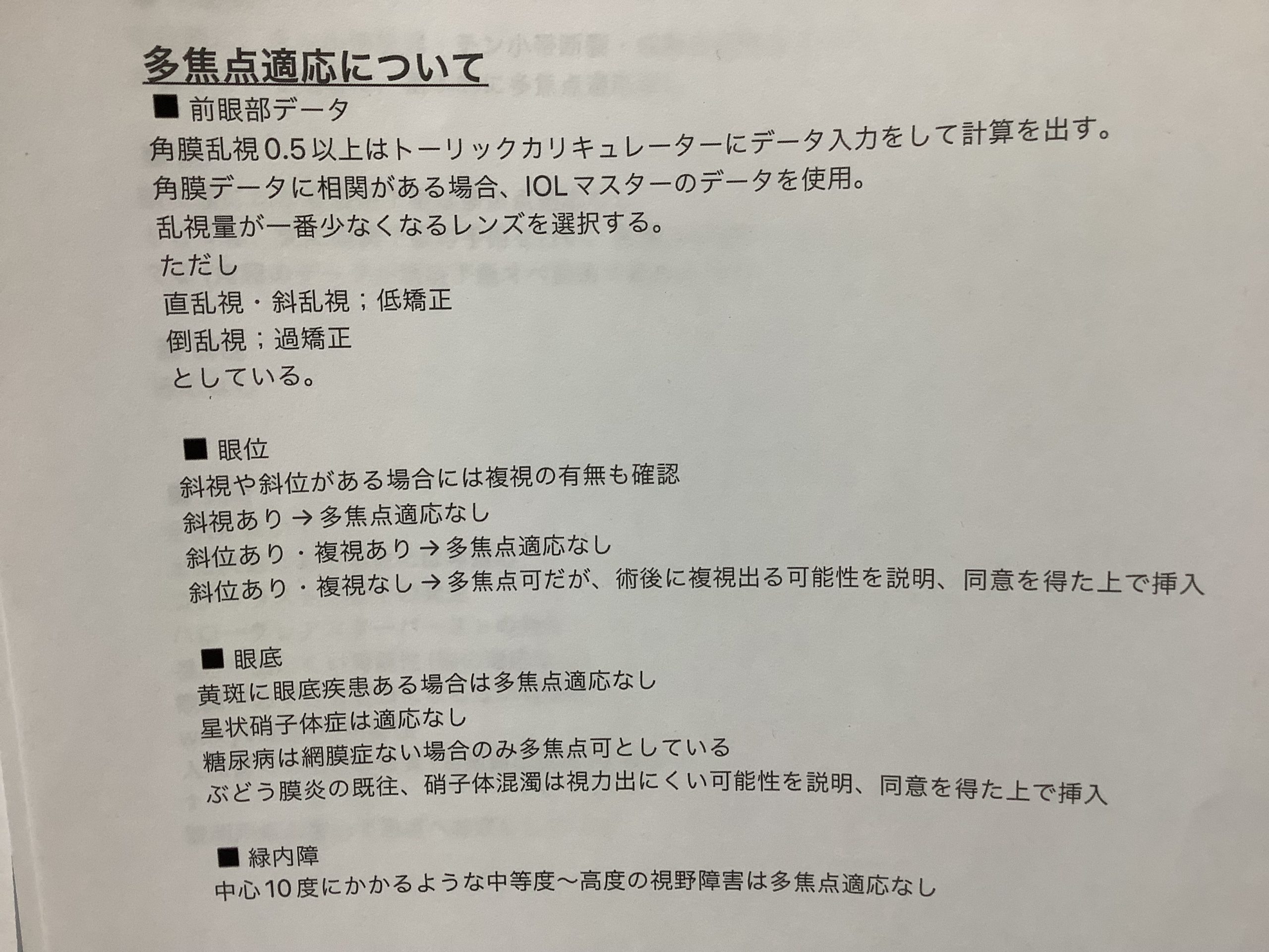 一般的に、緑内障のように白内障以外の眼の病気があると多焦点レンズは使いにくいとされていますが、単に他の病気があるから多焦点レンズが適応外となる訳ではありません。