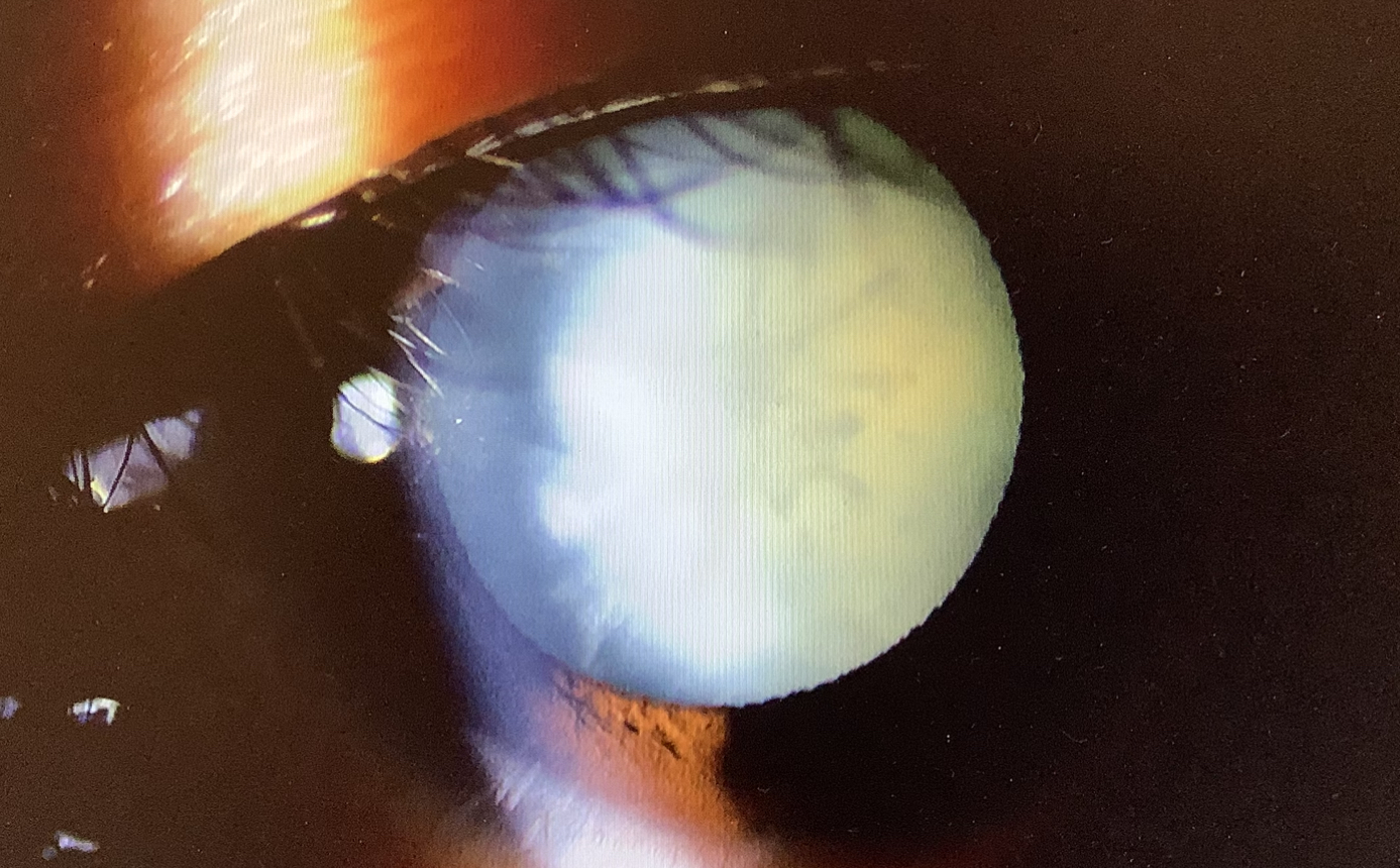 今日、『3月前から左眼が見えにくい』と受診された31歳の男性の方は、左眼の視力が 手動弁まで低下し、原因は白内障でした。白内障もこんなに視力が下がることは多くはないのですが、この男性の場合、白内障が真っ白に濁ってしまう“成熟白内障”という濁りが強いタイプで視力がだいぶ下がってしまいます。